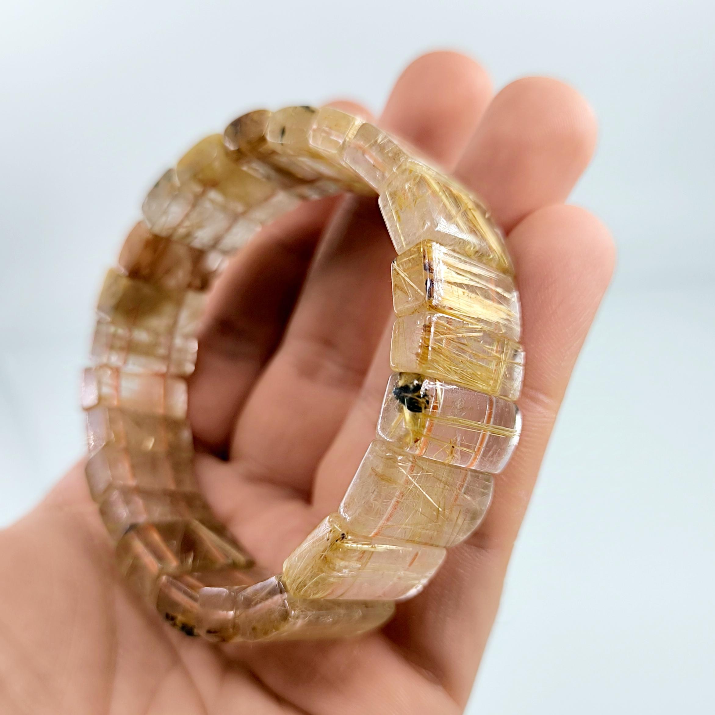 Üst kalite altın rutili kuvarts bileklik, benzersiz tasarımıyla da dikkat çekiyor. Bilekliğin ortasında bulunan altın rutili taşı, tüm aksesuarların en çok ilgi gören parçası olacak. Bu taşın altın rengi ve doğal şekli, bilekliğe zarif bir dokunuş katarak dikkatleri üzerine çeker.