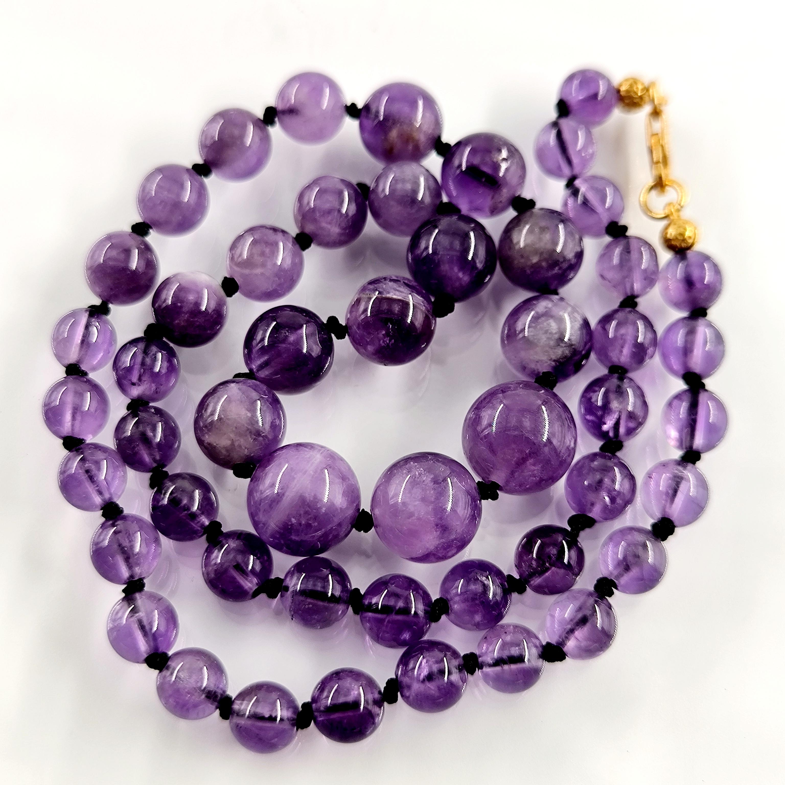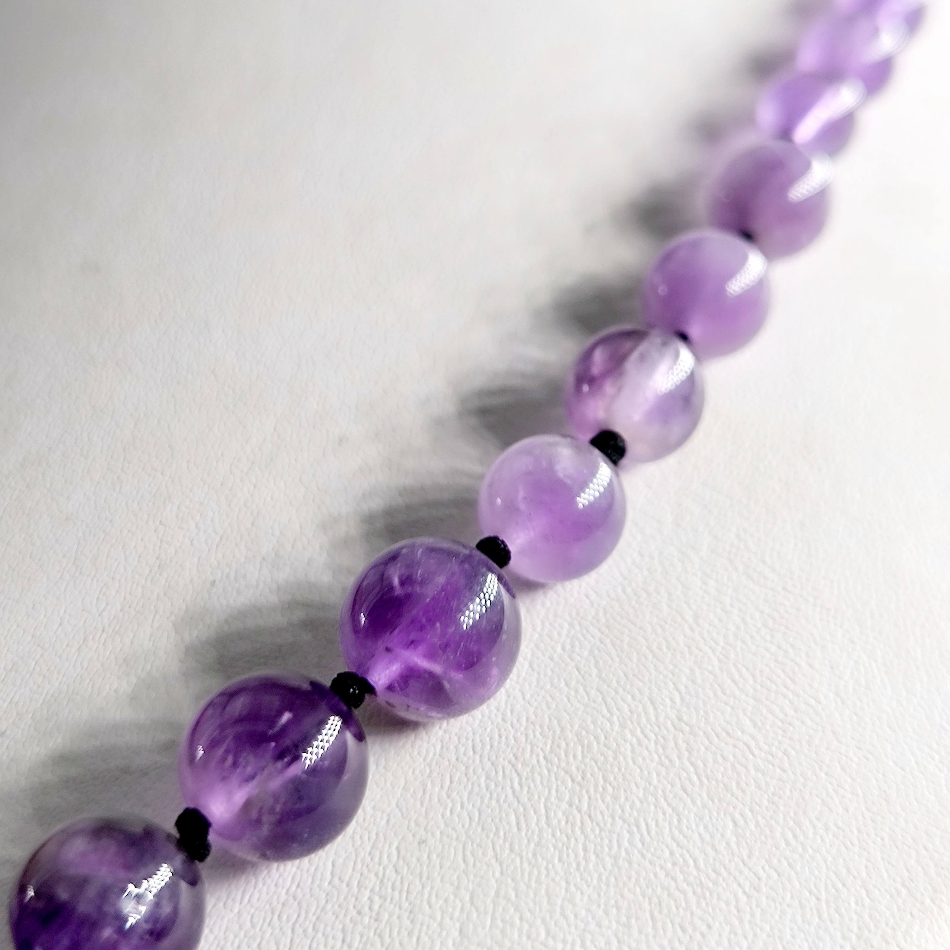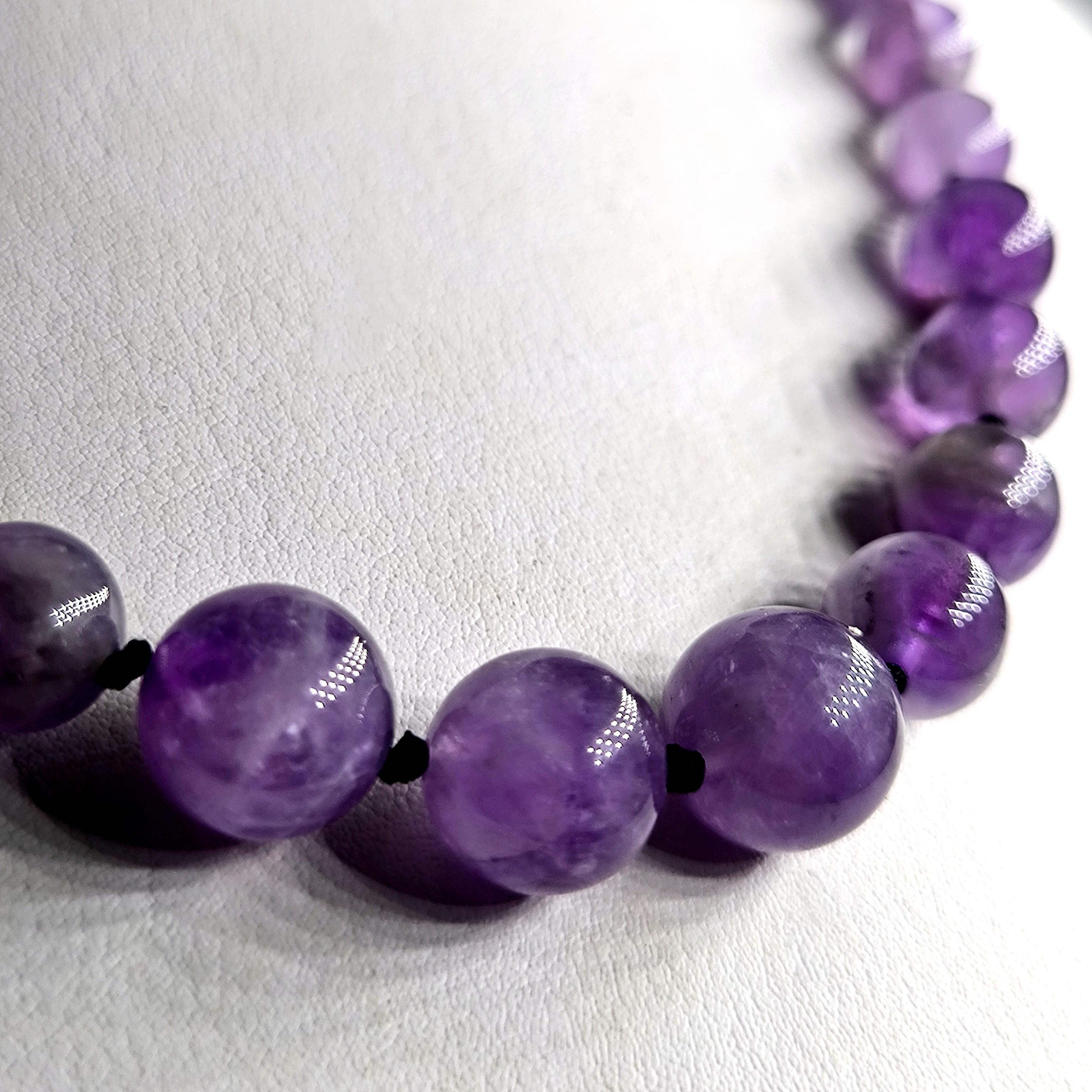 Ametist taşı, antik dönemlerden bu yana enerji veren, ruhsal açıdan güçlendirici ve sakinleştirici özellikleriyle bilinir. Bu yüzden bu taşın kullanımı, gerdanlık tasarımında güçlü bir sembolizm yaratmıştır. Üstelik bu taşın sürmeli dokusu, parıldayan rengi ve berraklığı, her zaman dikkat çekici bir görünüm sunar.