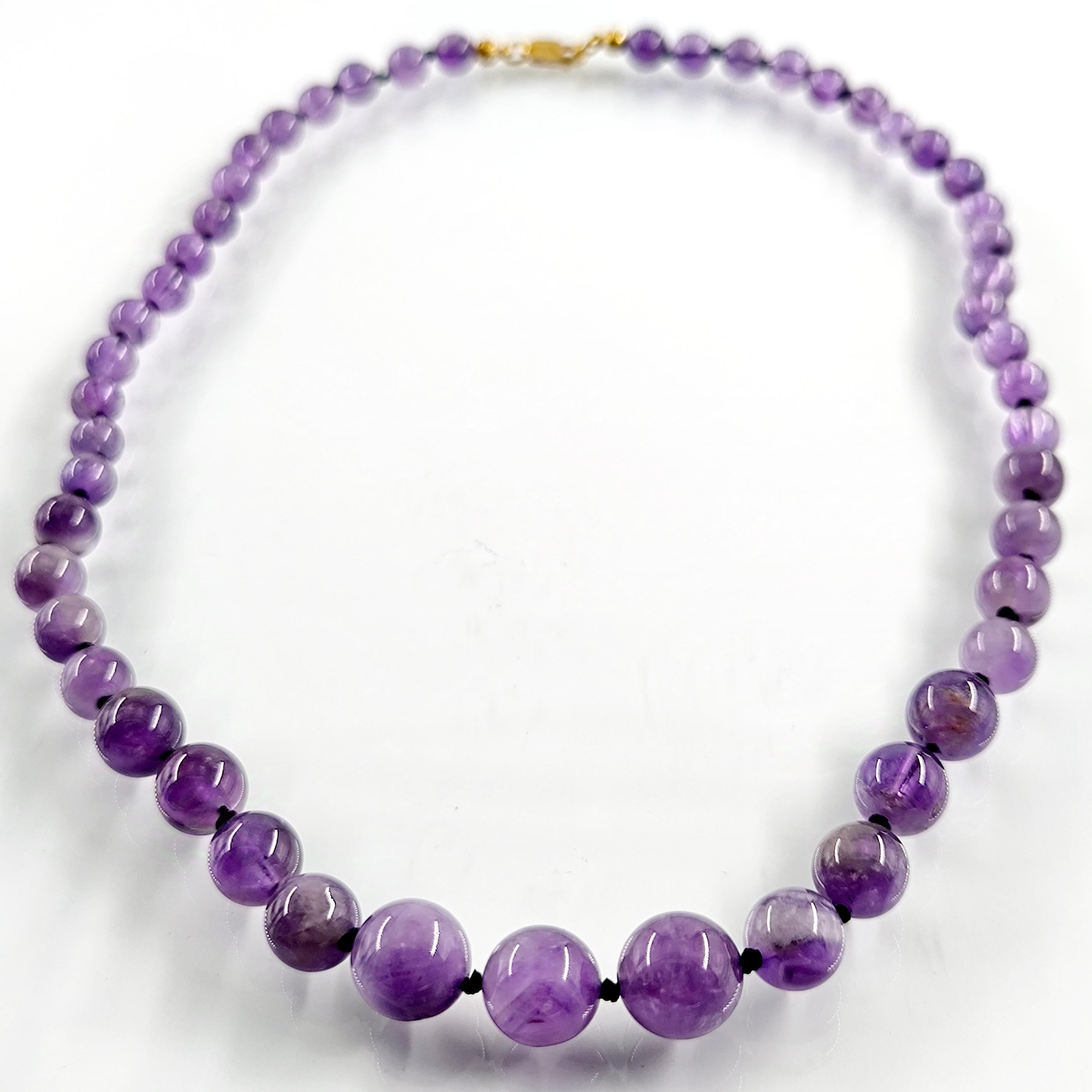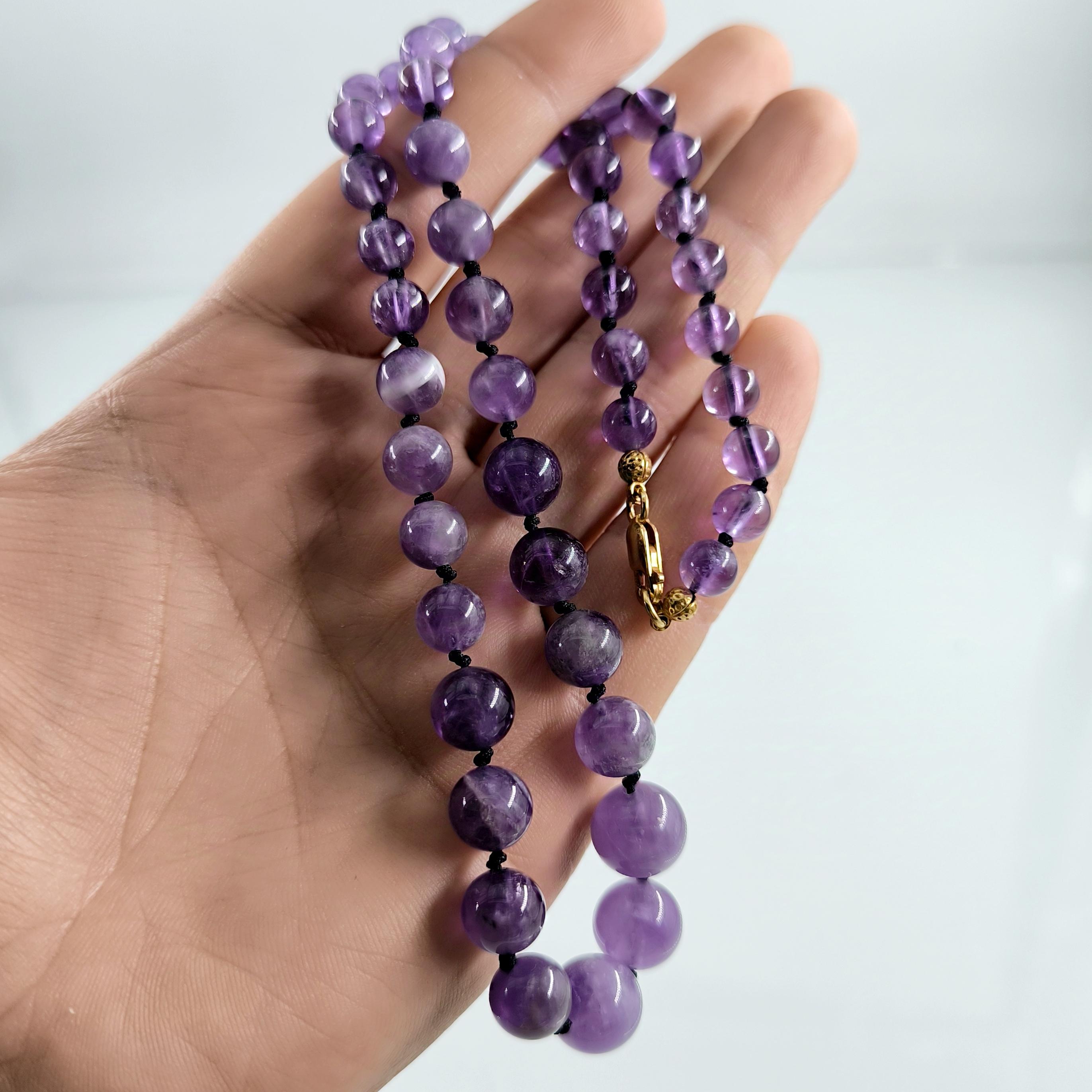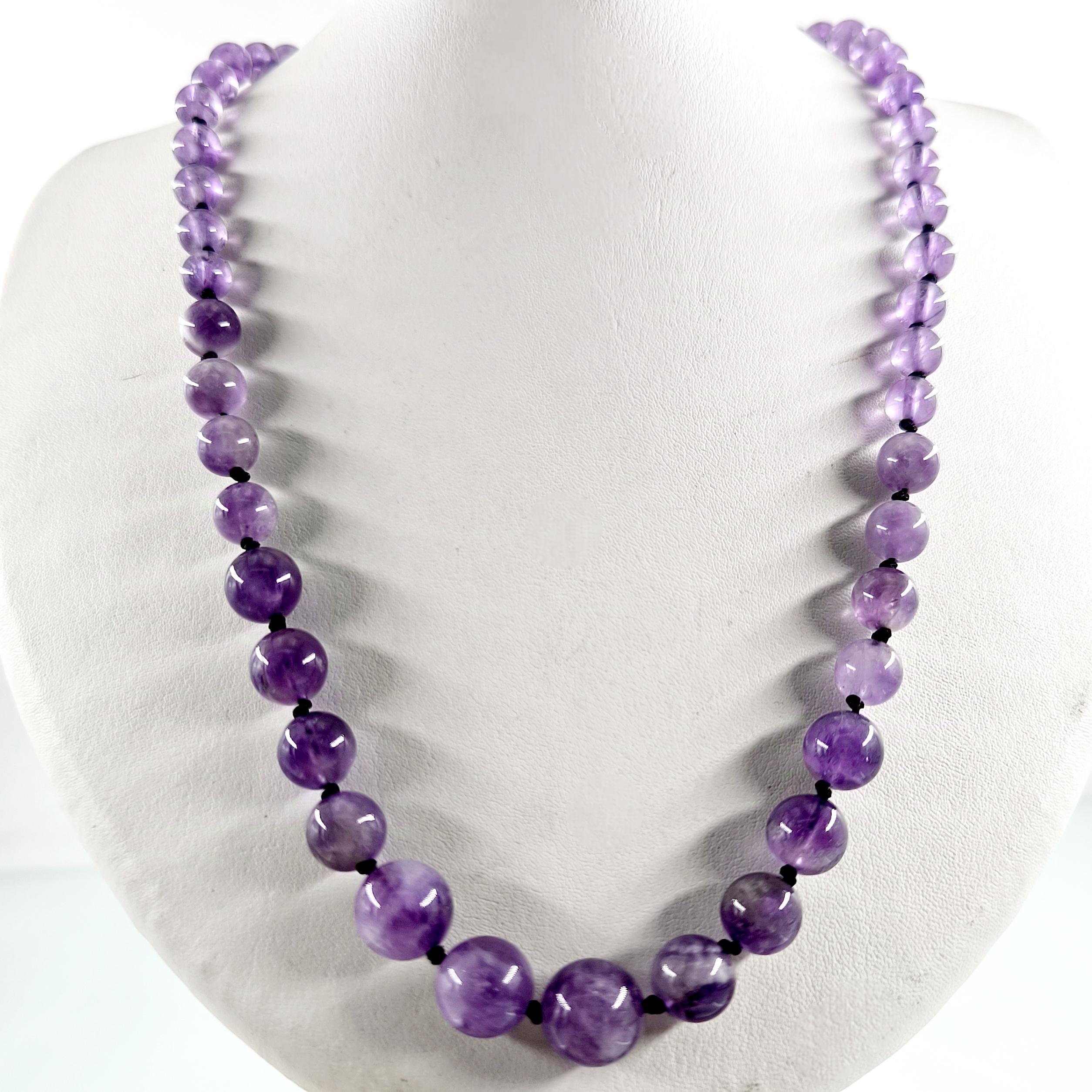 Ametist taşı, antik dönemlerden bu yana enerji veren, ruhsal açıdan güçlendirici ve sakinleştirici özellikleriyle bilinir. Bu yüzden bu taşın kullanımı, gerdanlık tasarımında güçlü bir sembolizm yaratmıştır. Üstelik bu taşın sürmeli dokusu, parıldayan rengi ve berraklığı, her zaman dikkat çekici bir görünüm sunar.