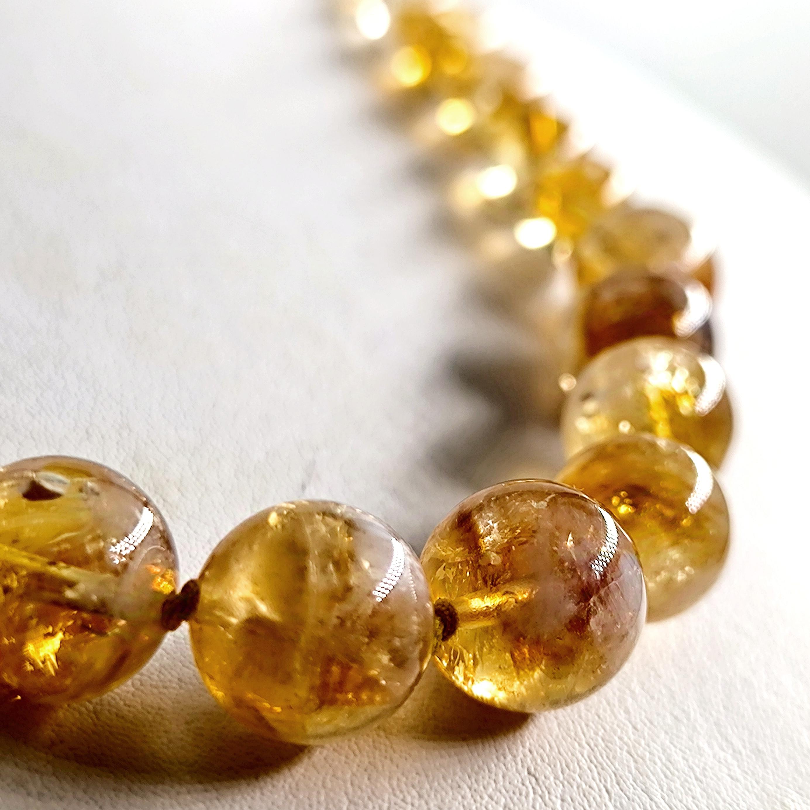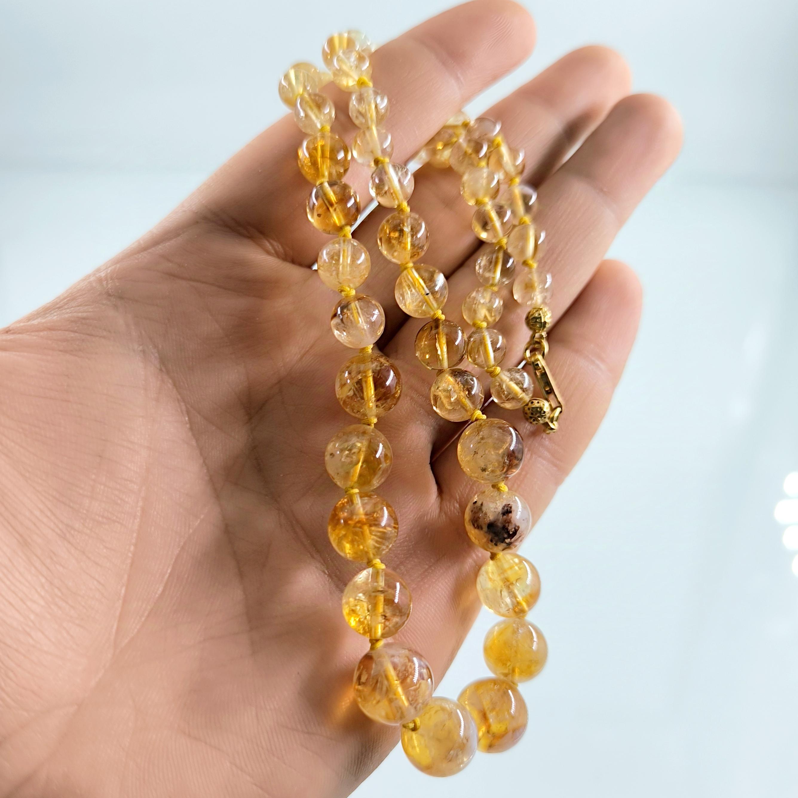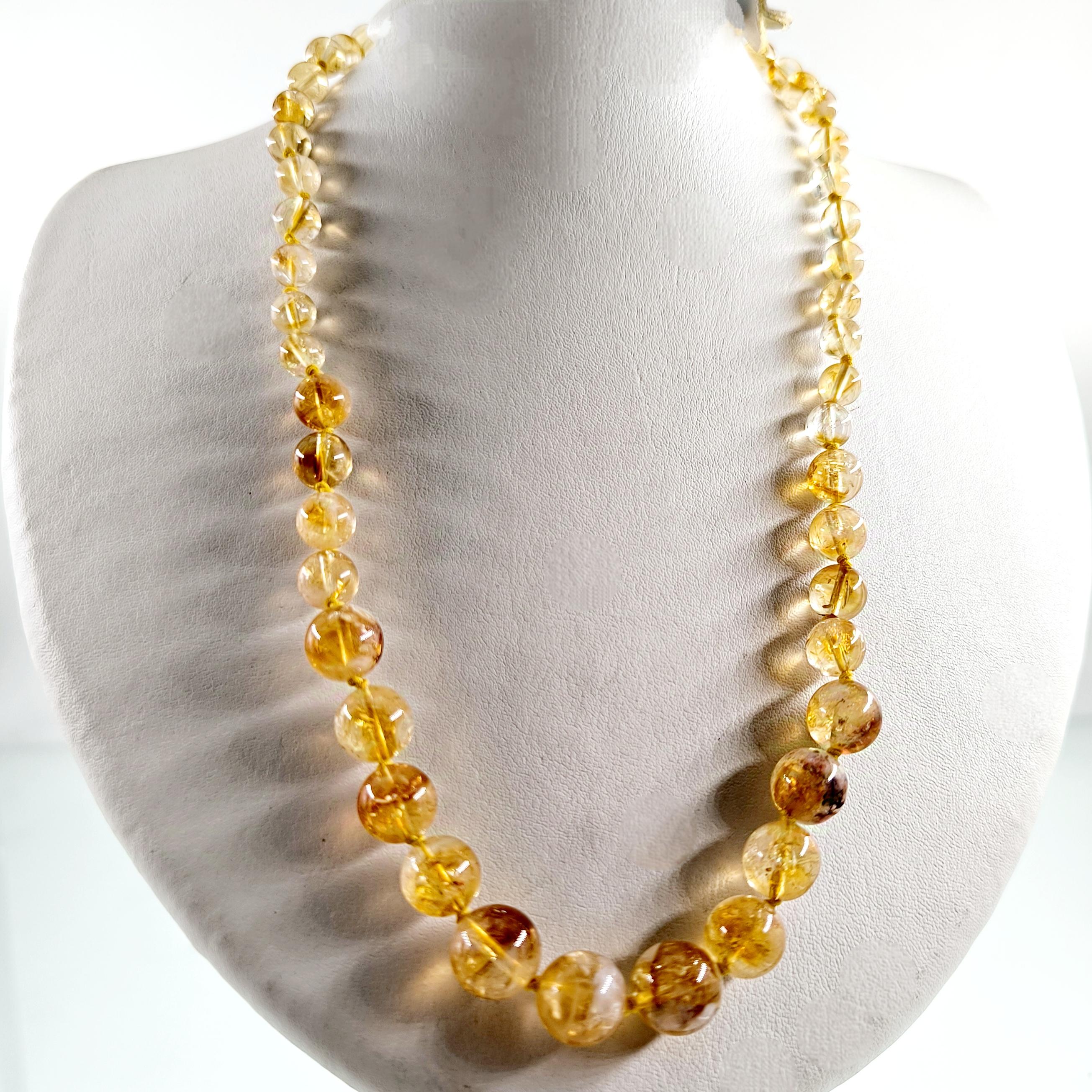 Gerdanlığın en önemli özelliği, doğal ve saf sitrin taşlarının kullanılmasıdır. Bu taşlar, doğal güzelliklerini ve çekiciliğini koruyarak, gerdanlığa benzersiz bir ışıltı katmaktadır. Taşların yüksek kaliteli süzme işleminden geçirilmesi sayesinde, parlaklıklarını ve berraklıklarını yıllarca koruyacakları garanti edilir.