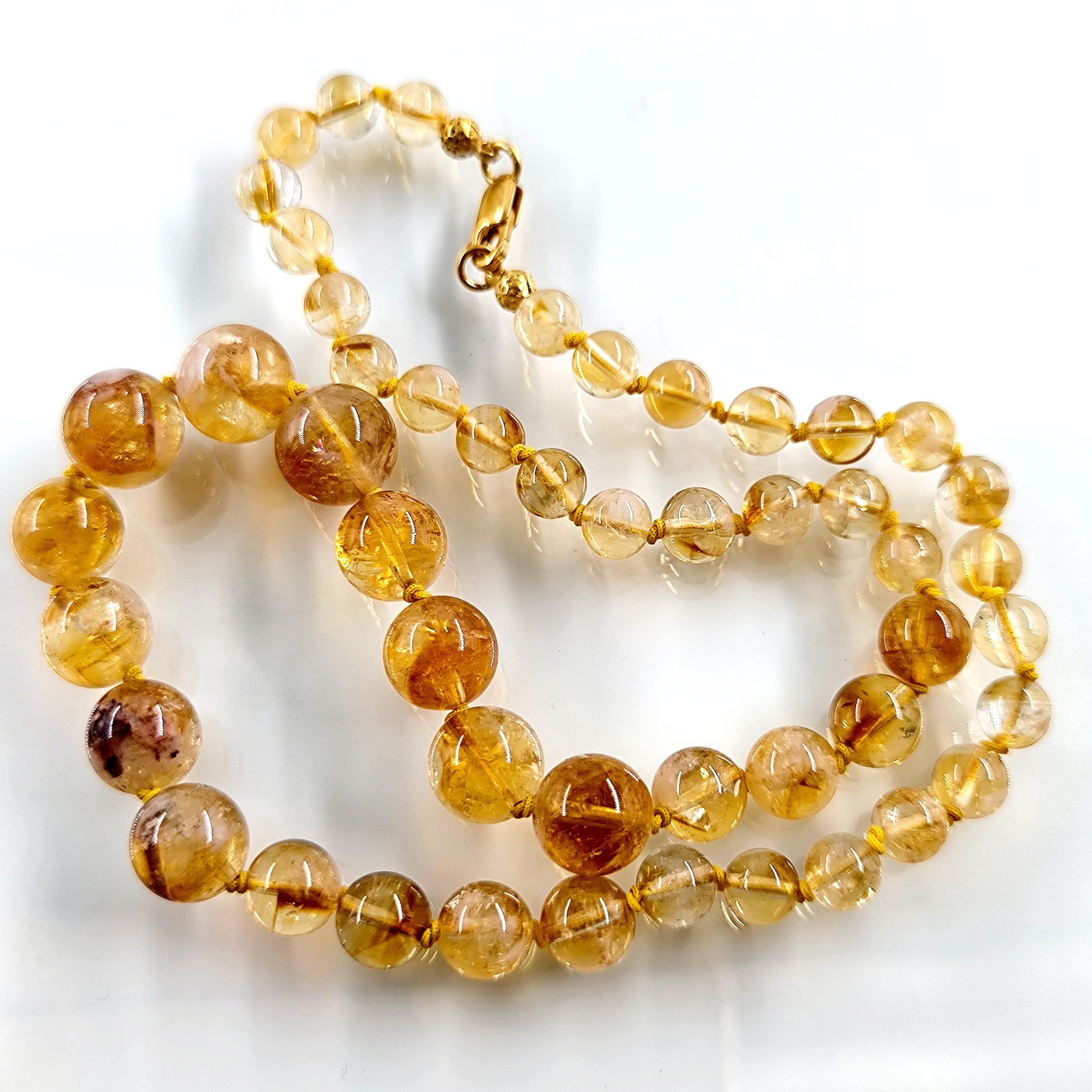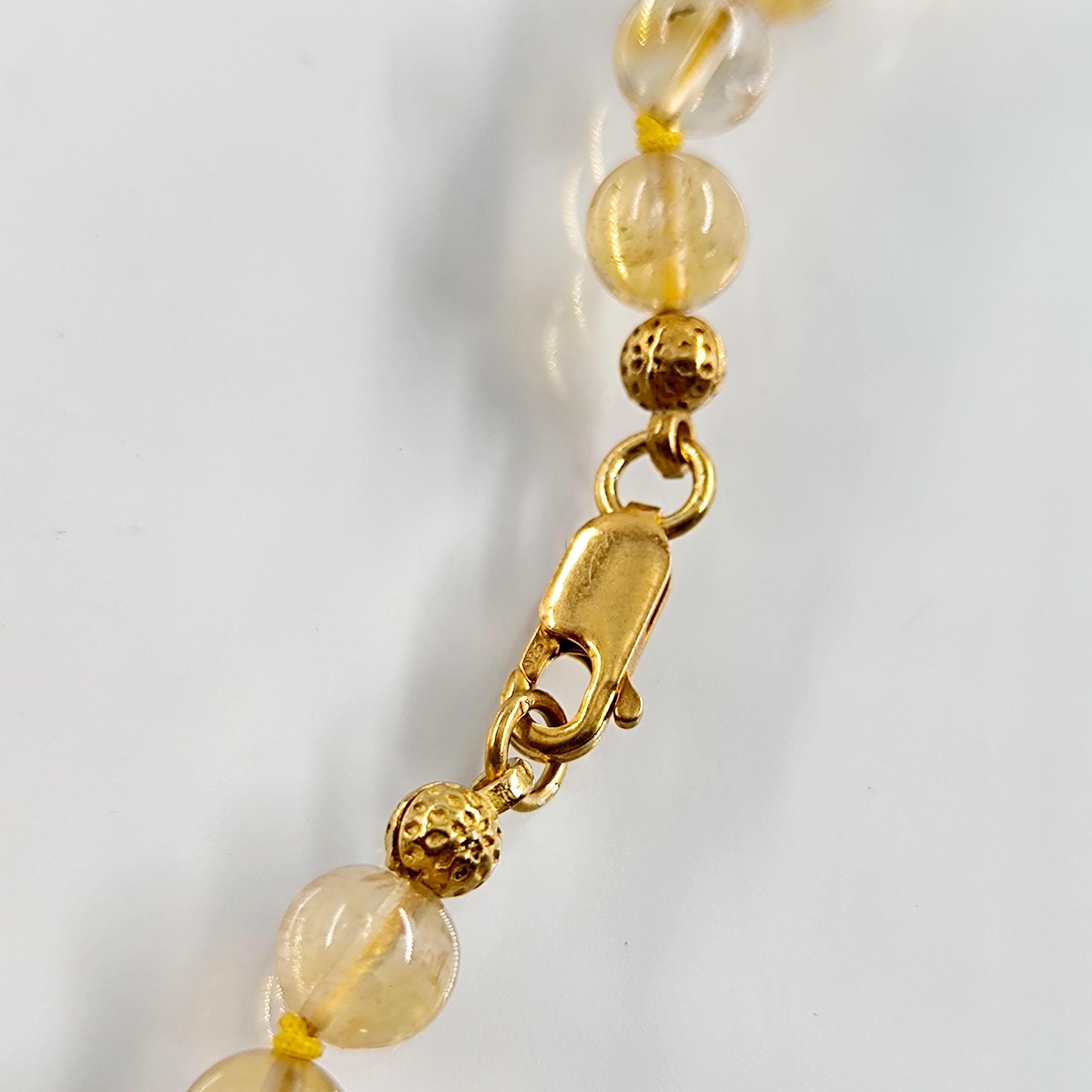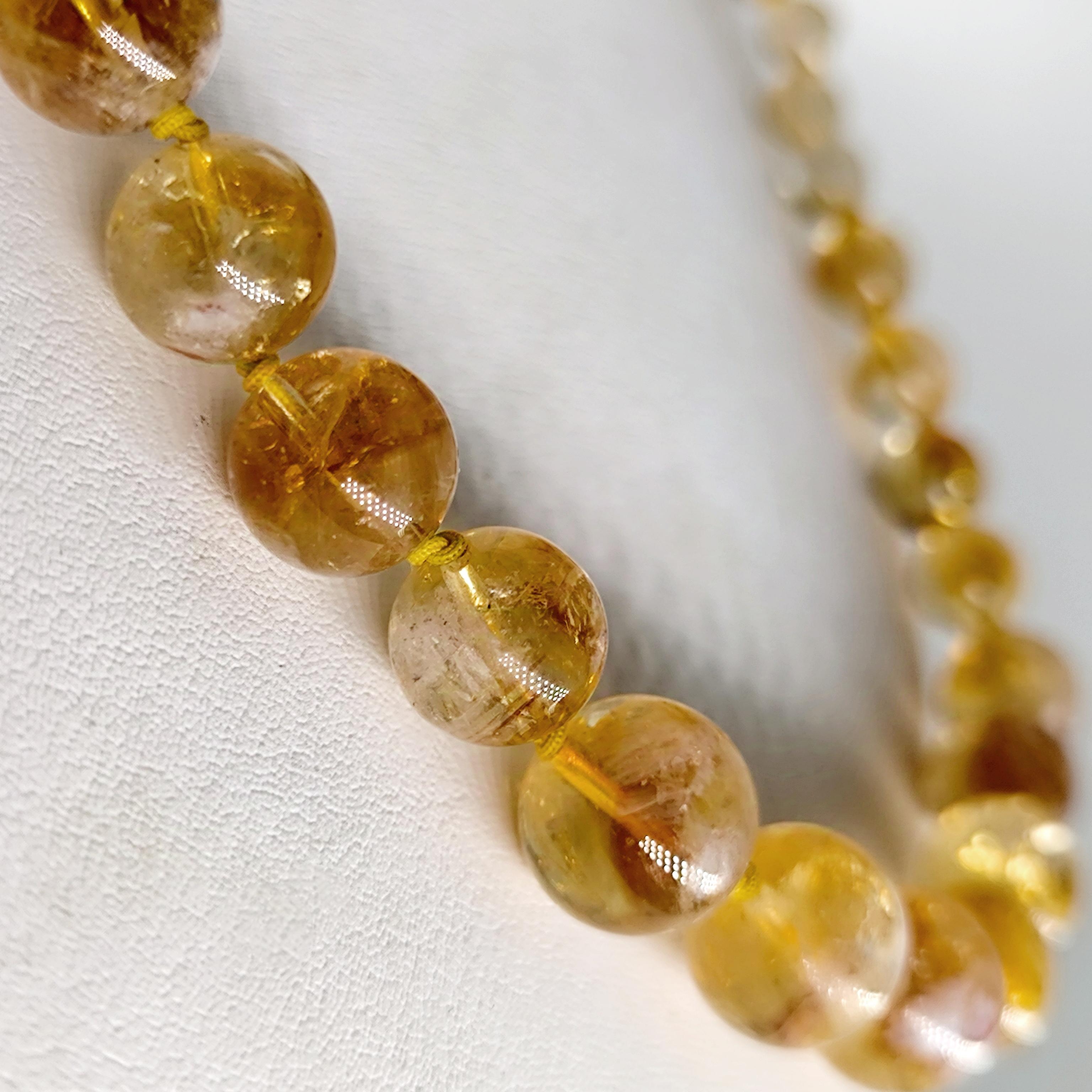 Gerdanlığın en önemli özelliği, doğal ve saf sitrin taşlarının kullanılmasıdır. Bu taşlar, doğal güzelliklerini ve çekiciliğini koruyarak, gerdanlığa benzersiz bir ışıltı katmaktadır. Taşların yüksek kaliteli süzme işleminden geçirilmesi sayesinde, parlaklıklarını ve berraklıklarını yıllarca koruyacakları garanti edilir.