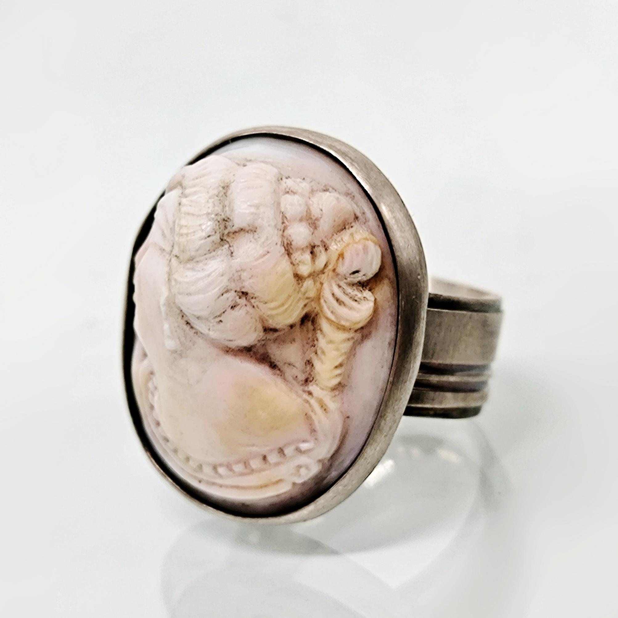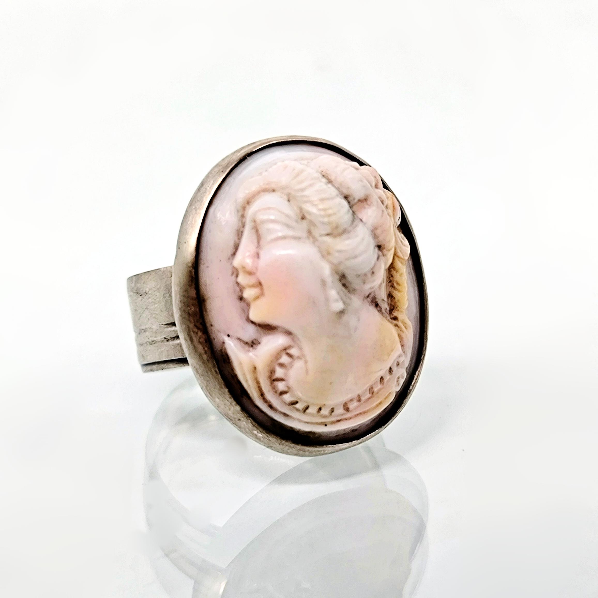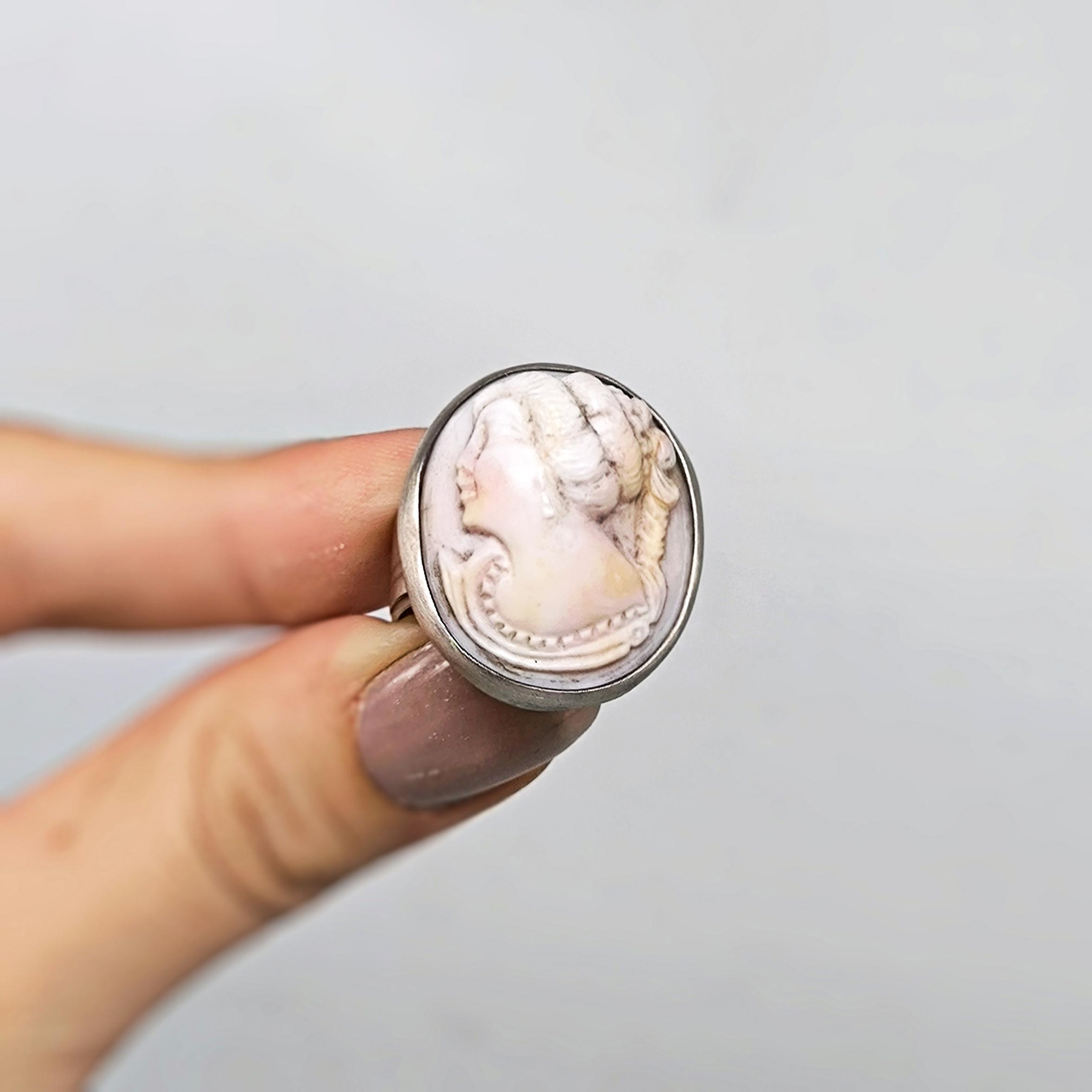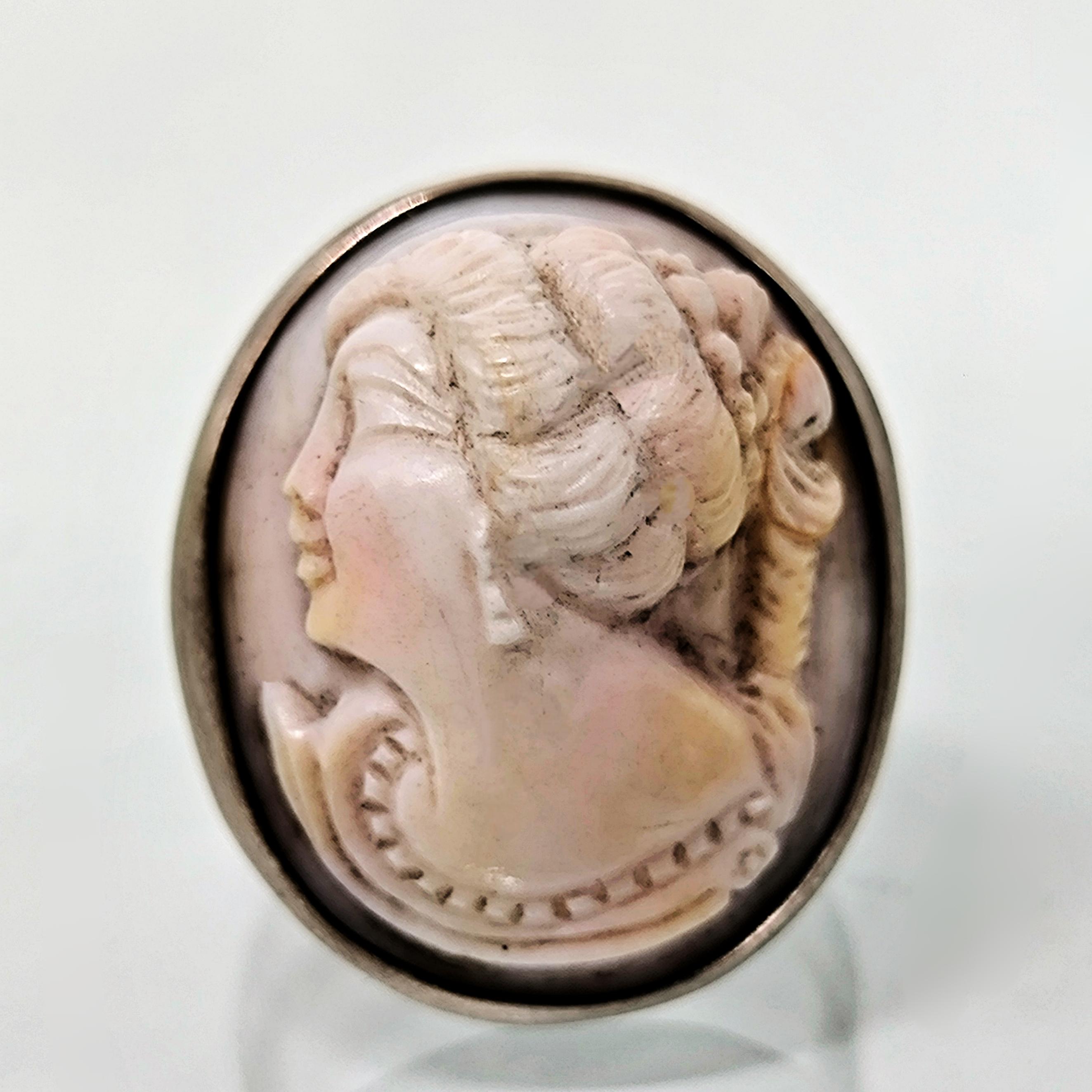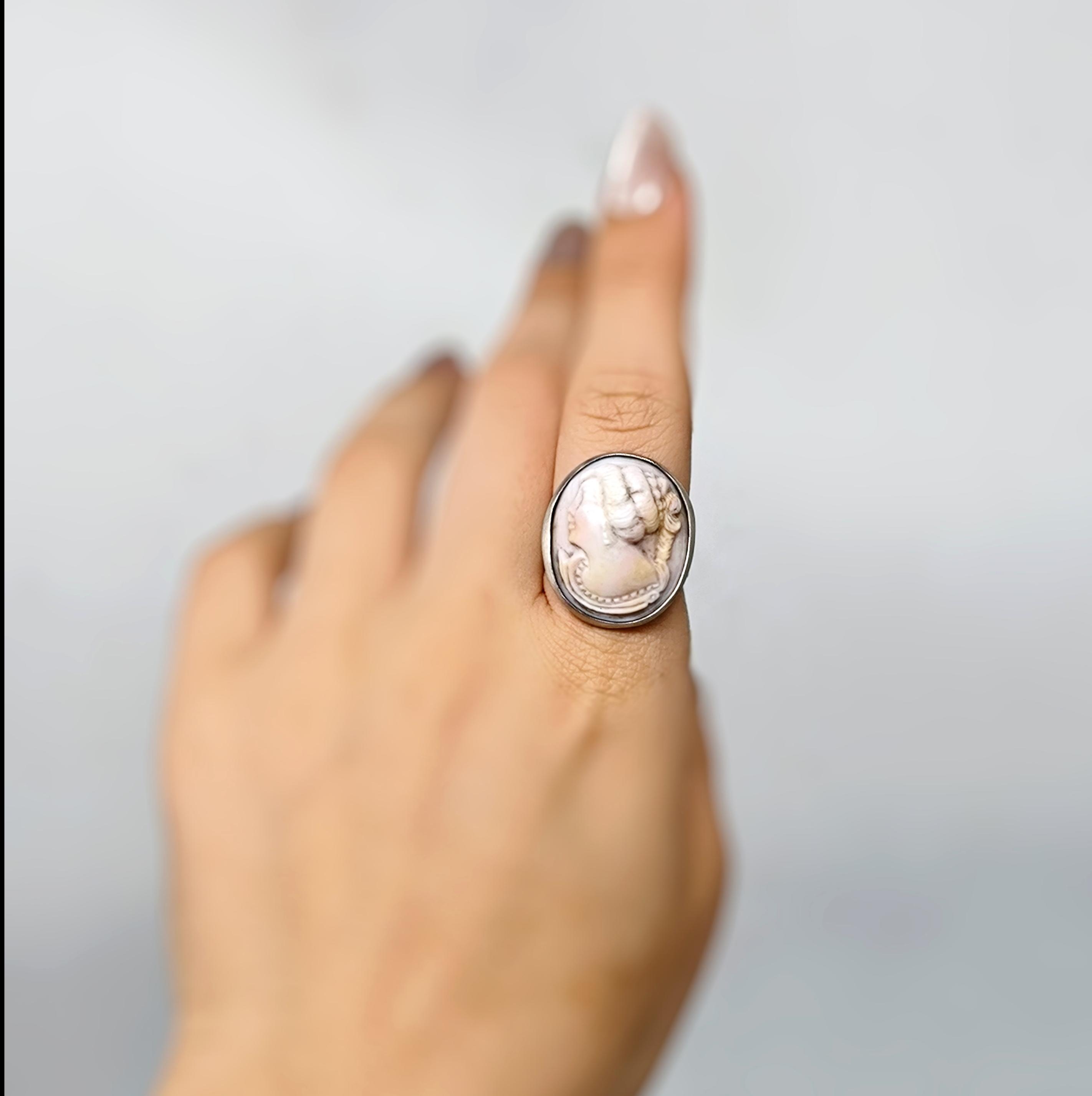 Bu göz alıcı yüzükte, 19. yüzyıla ait Viktorya döneminden kalma orijinal beyaz shell cameo kullanılmıştır 🤍 Klasik kadın silueti, incelikle oyulmuş detaylarıyla adeta zamanın içinden çıkıp gelmiş bir zarafet abidesi!