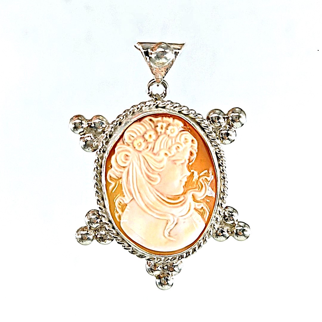 Zamanı aşan bir zarafet... Bu kameo, antik Roma ve Viktorya zarafetini bir araya getirirken, gümüş çerçevesiyle asil bir duruş sunuyor.