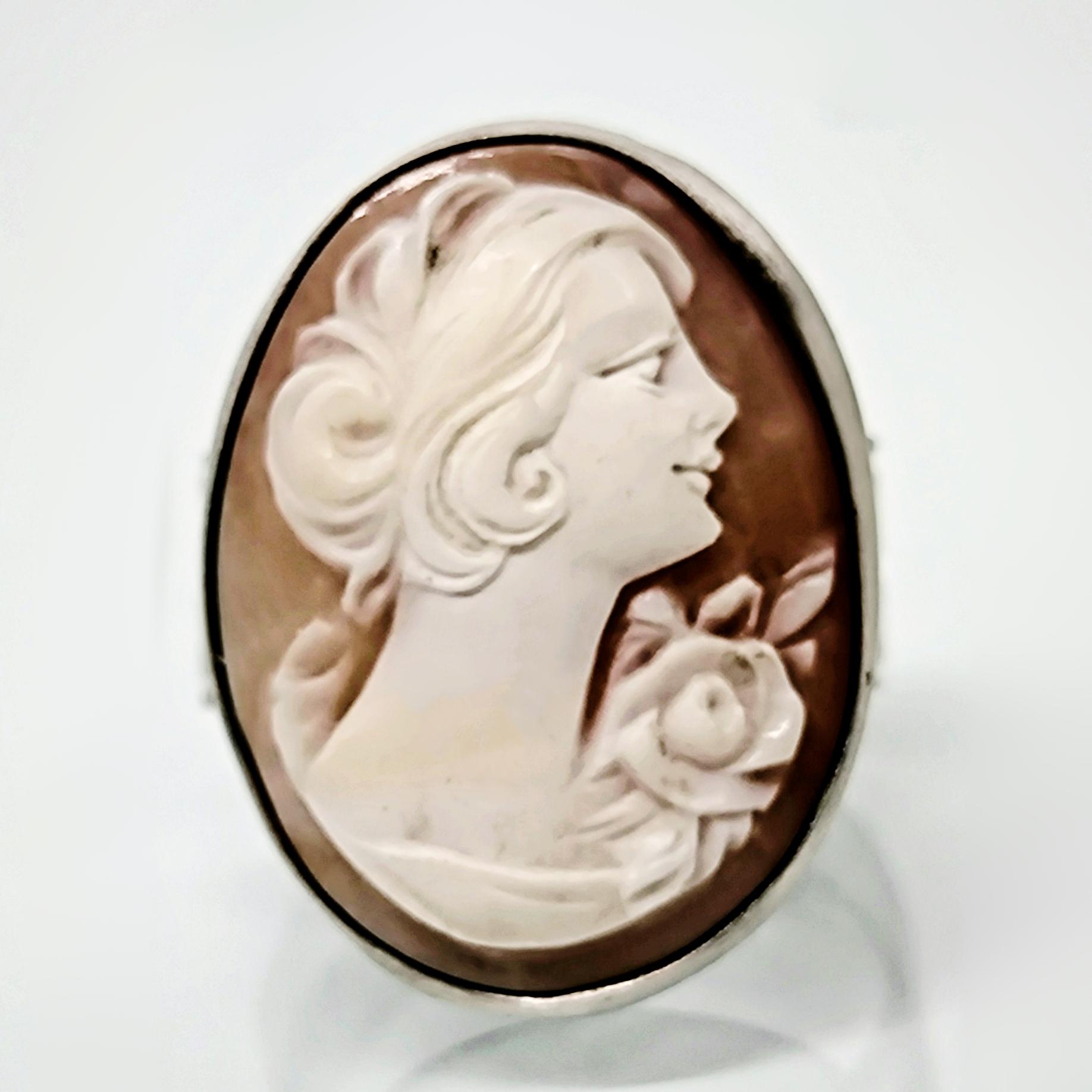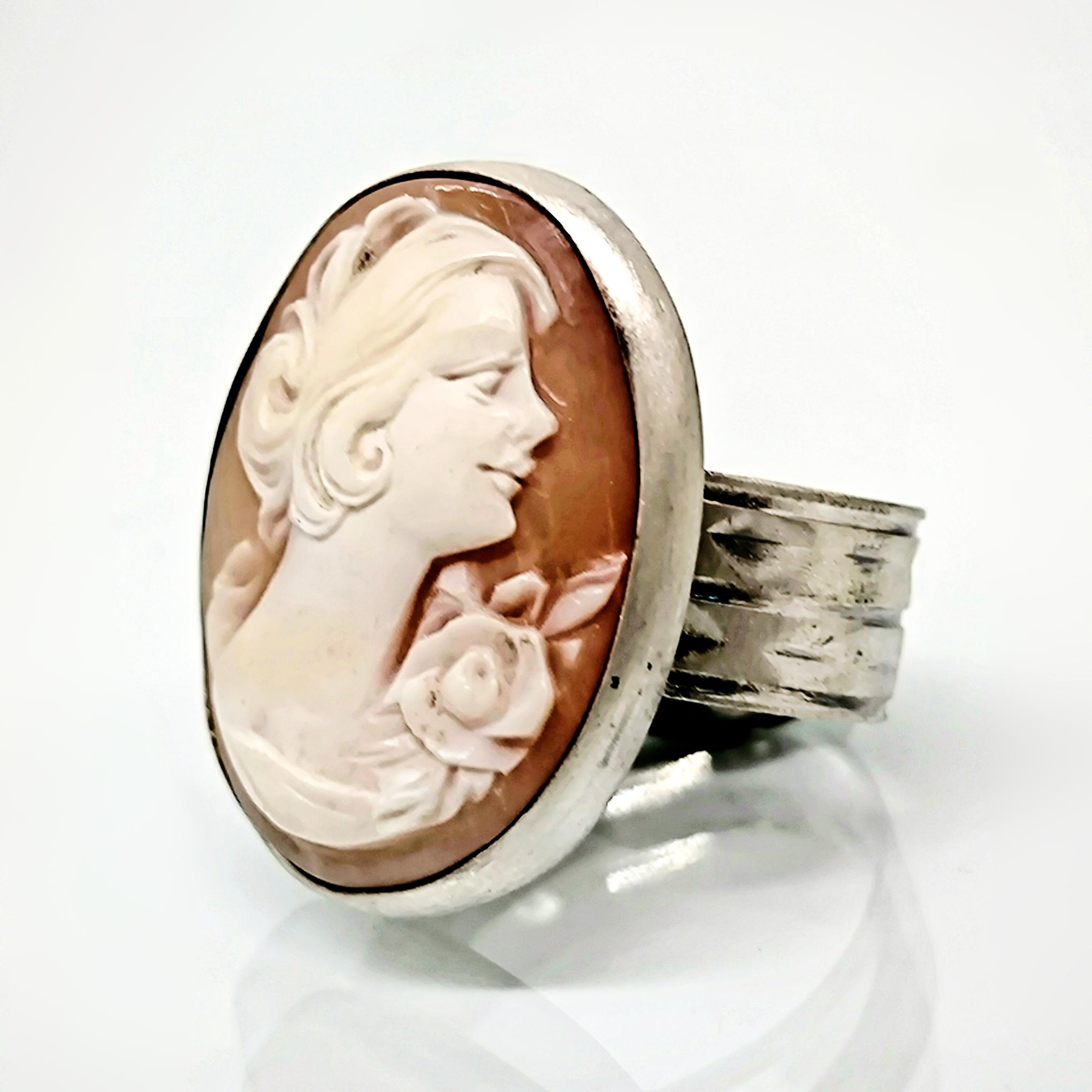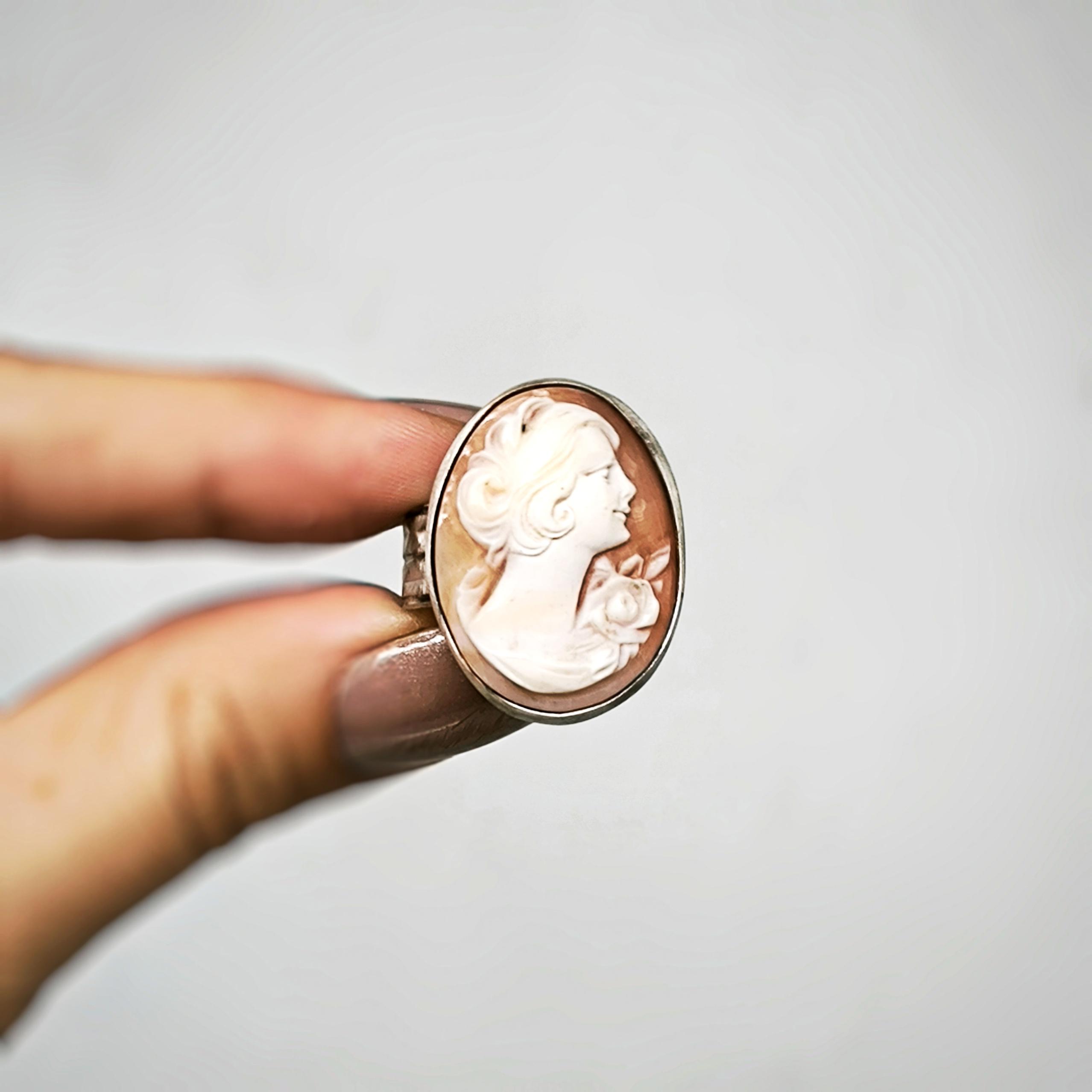 Zamana meydan okuyan bu zarif yüzükte, 19. yüzyıl Viktorya dönemine ait orijinal kabuk cameo kullanılmıştır. Elle oyulmuş klasik kadın silueti, dönemin estetik anlayışını ve romantik ruhunu yansıtır 🌹