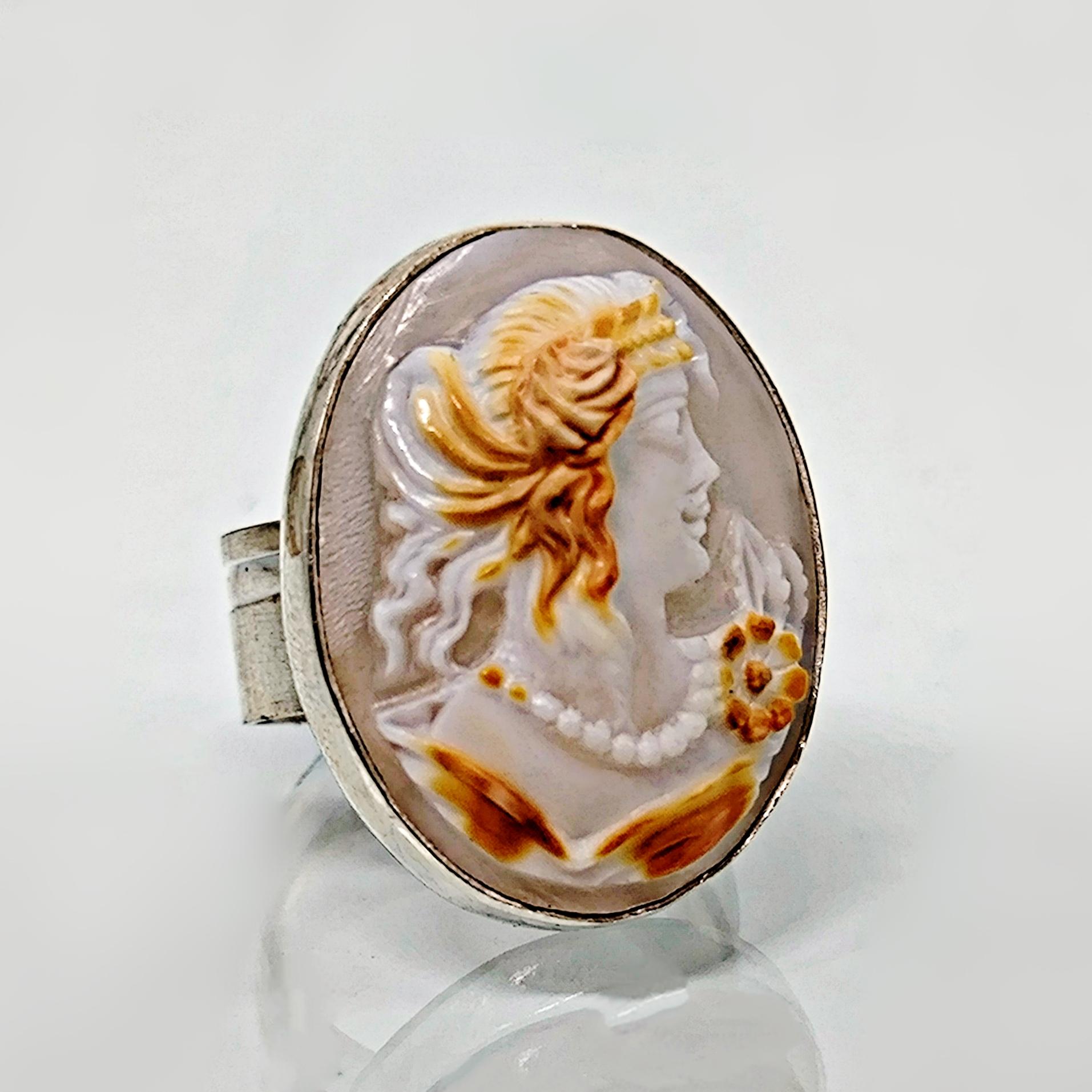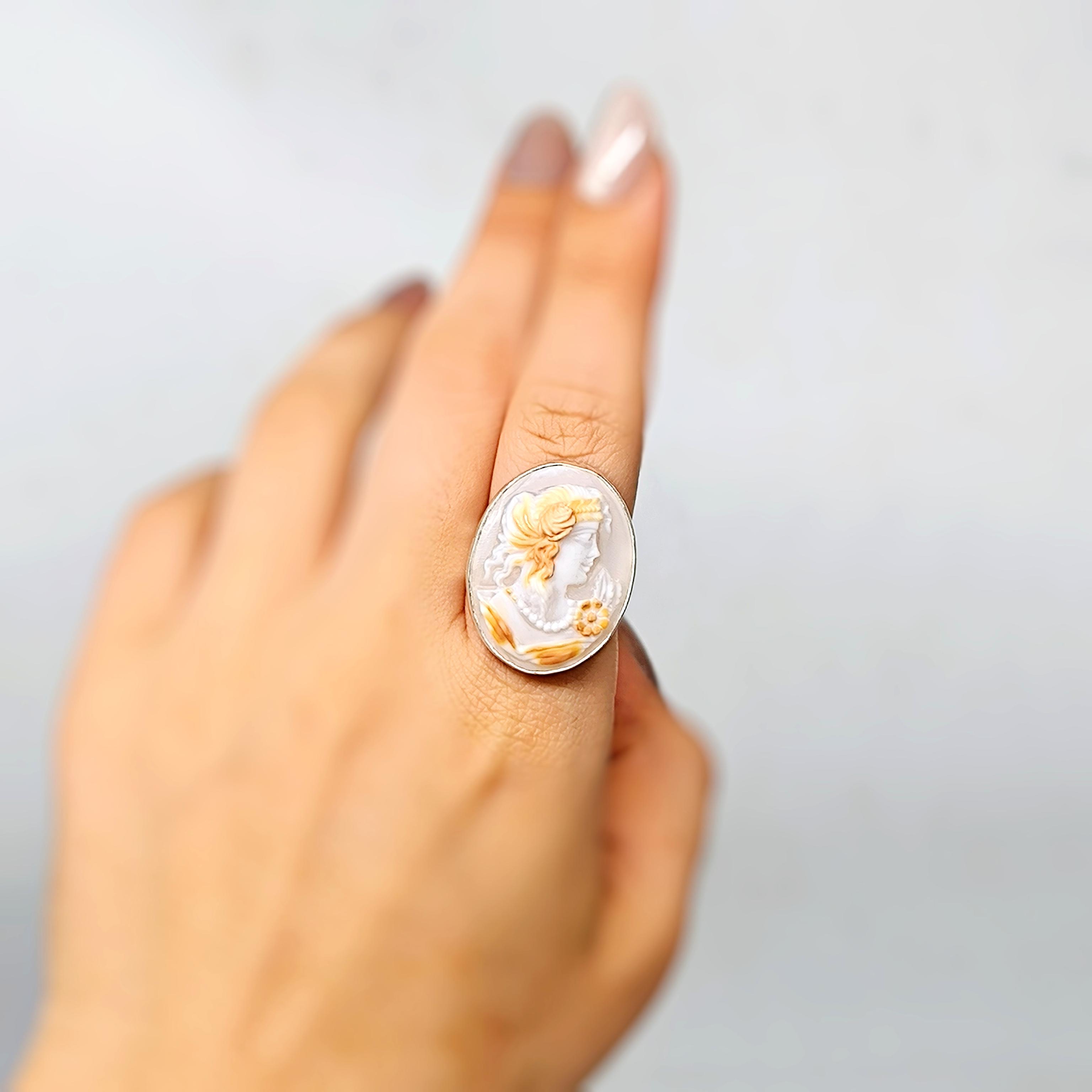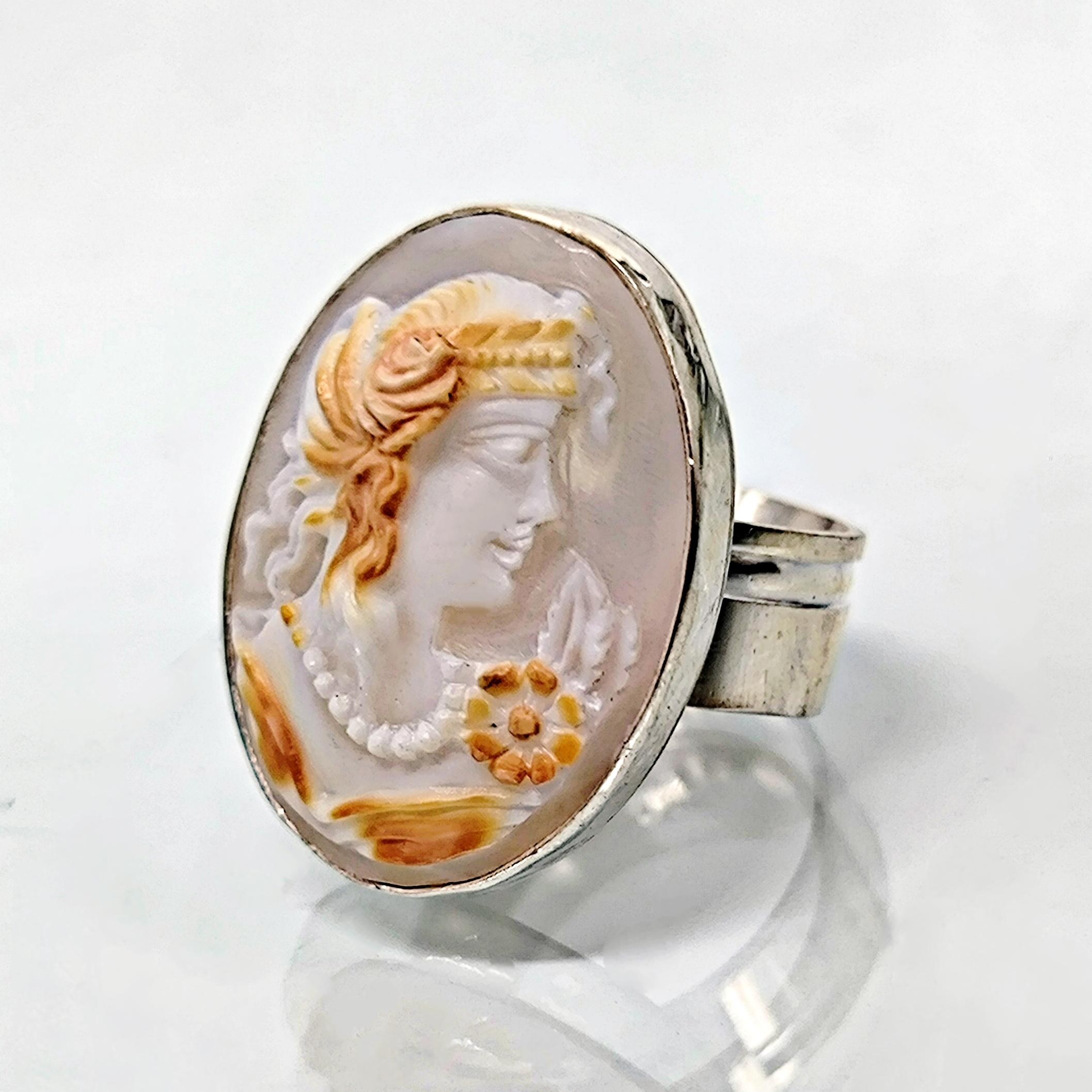 Bu zamansız yüzükte, 19. yüzyıla ait orijinal Viktorya dönemi cameosu kullanılmıştır.