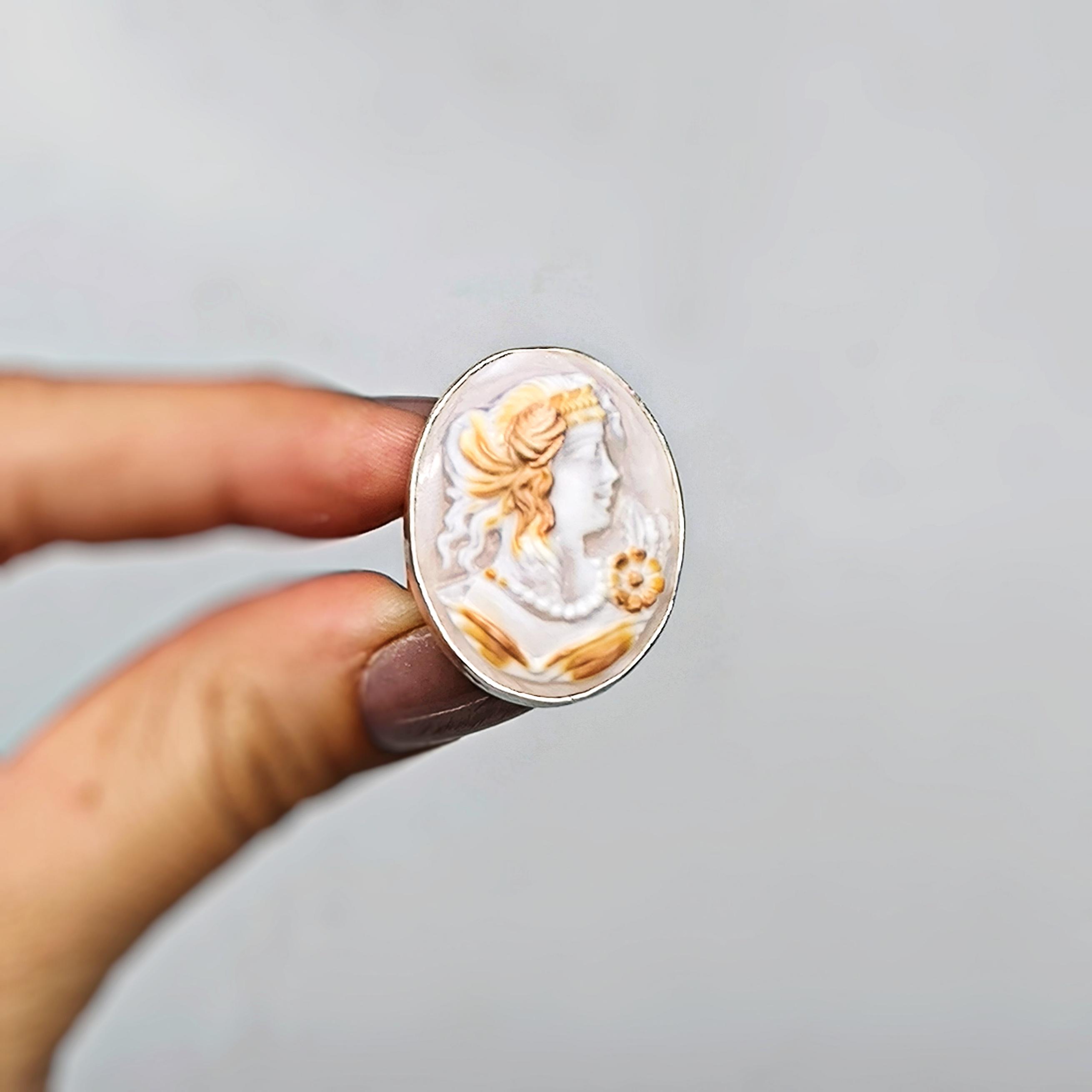Oyma, nadir bulunan Cassis Rufa (deniz salyangozu) kabuğu üzerine tamamen elle yapılmıştır 🐚🤎