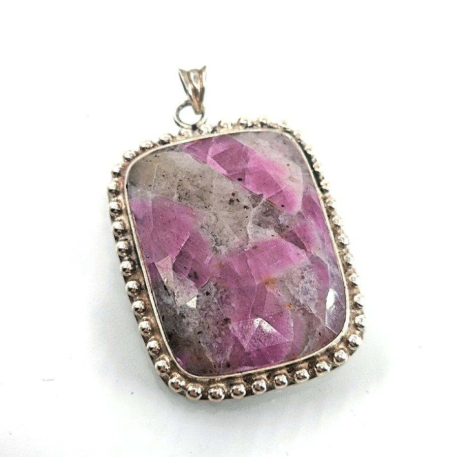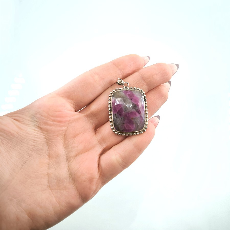 Yakut Taş Kullanarak Tasarladığımız Tamamen El Yapımı 925 Ayar Gümüş Kolye Ölçüler: (3.5x2 cm)