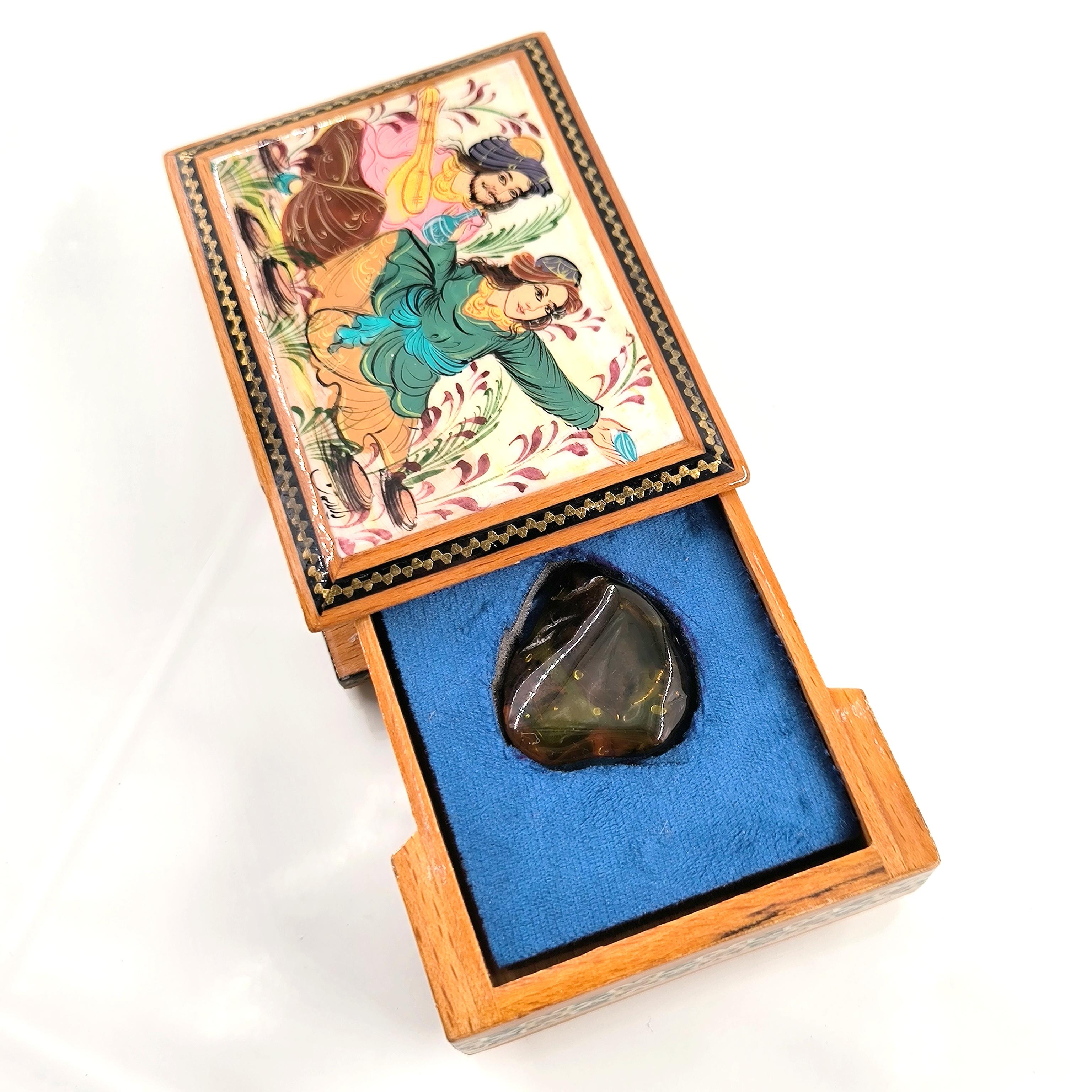 Sanırım Baltık ülkelerindeki Kehribar müzelerinde dahi böylesi güzel bir parça yoktur. %100 Natürel Doğu Karayipler damla kehribarı içerisinde tam 3 parça oldukça net görülen yaprak fosilli muhteşem bir parça! Adeta doğanın mucize bir mumyalama sanatı.. bu özel parçayı İran marküteri & minyatür işçilikli sanatçı imzalı oyma yuvalı kutu içerisinde muhafaza edilmiş şekilde gönderilecektir.