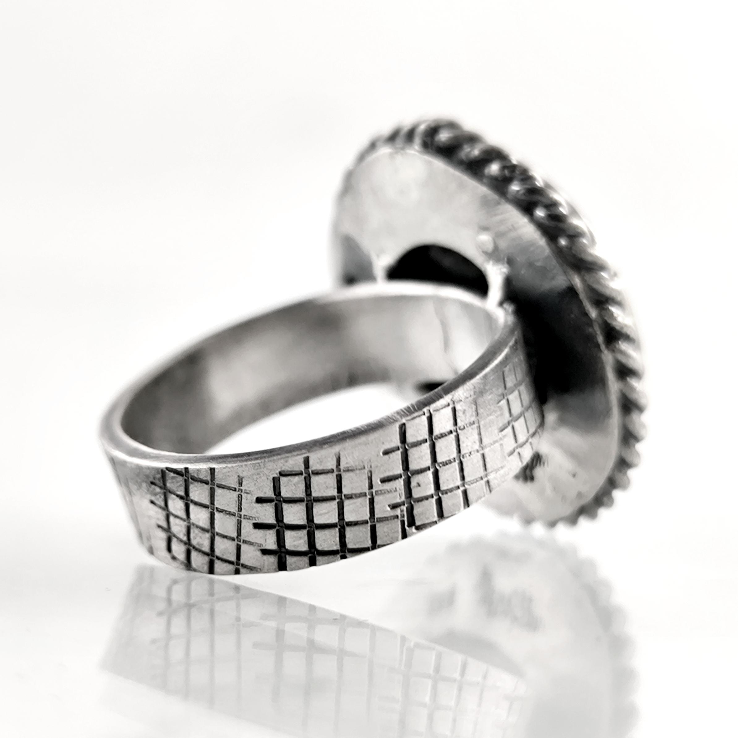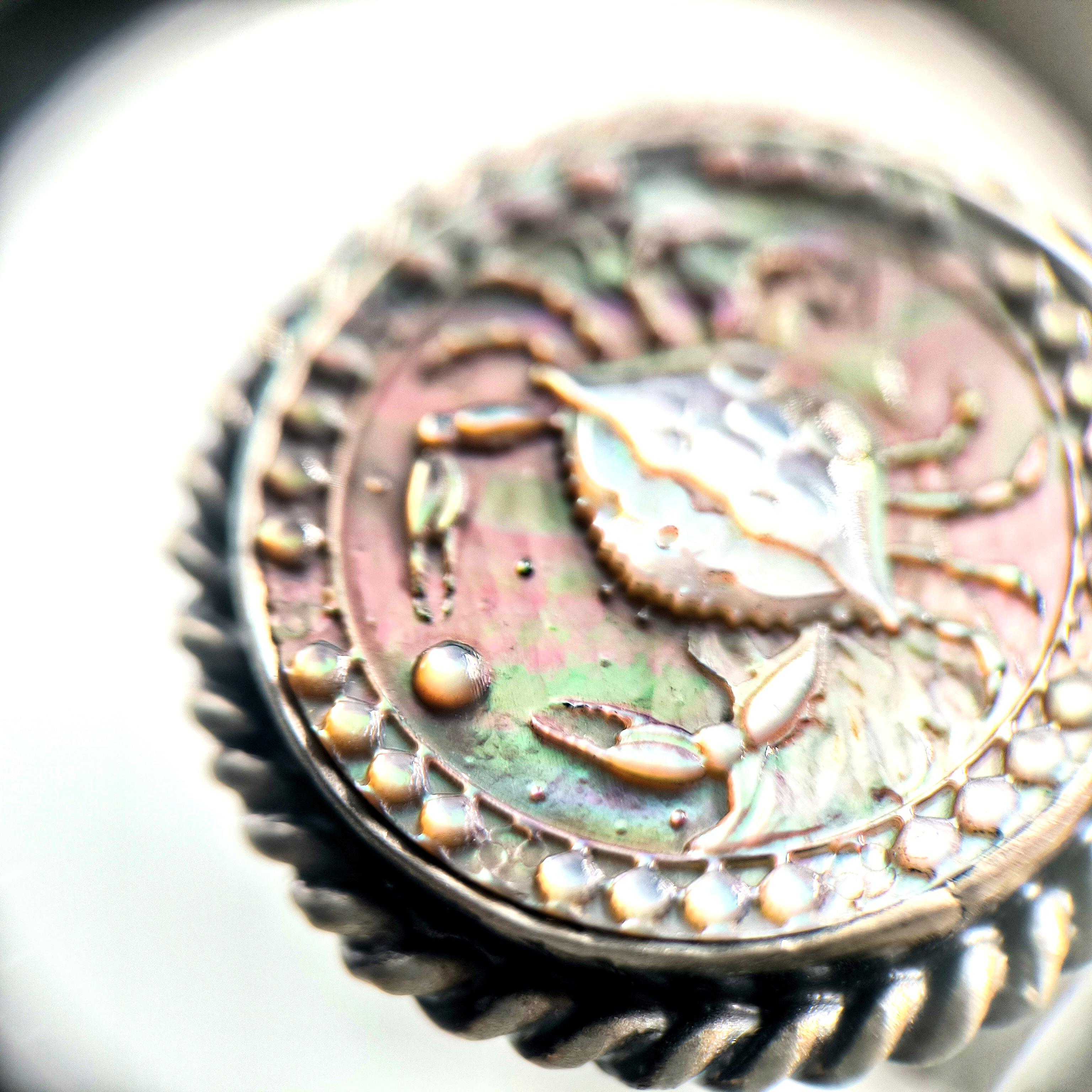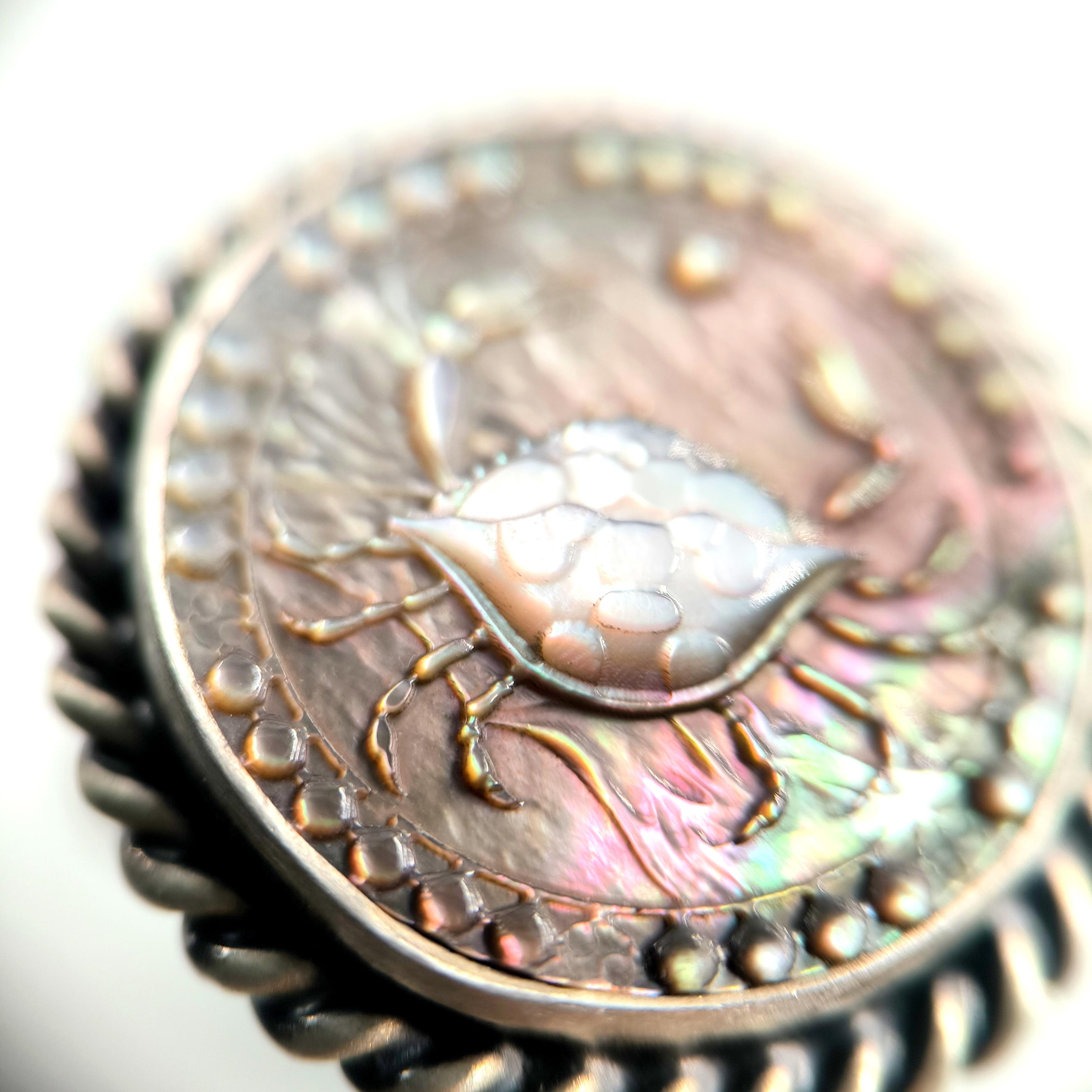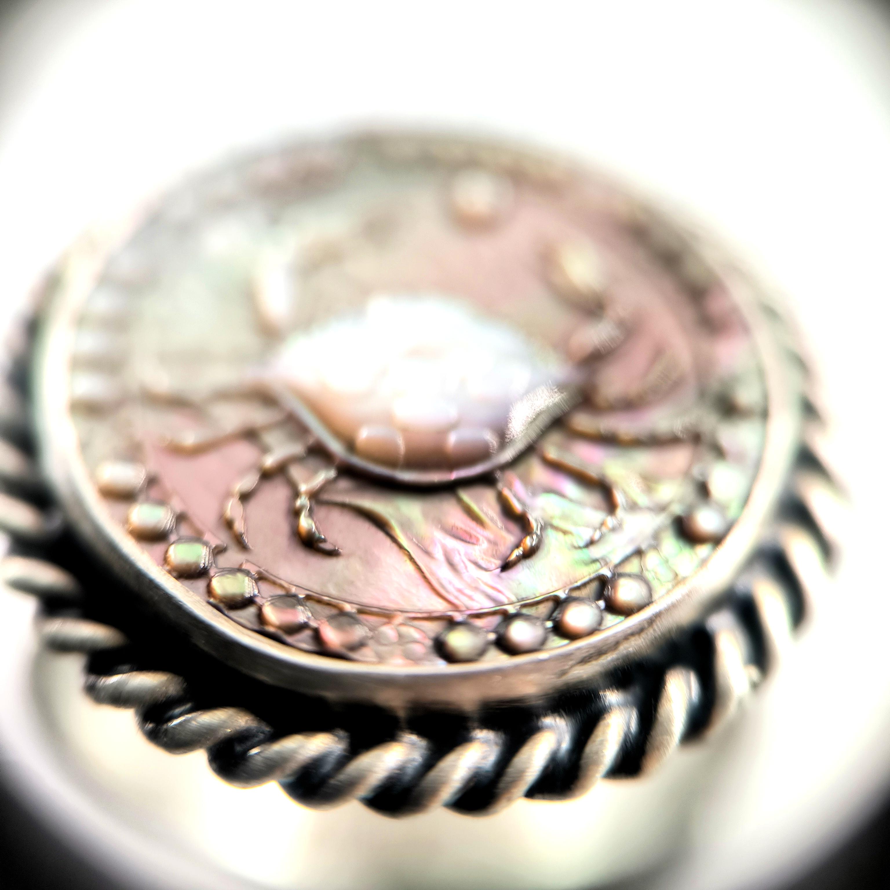 Doğal sedef üzerine CNC işleme ile ince ince oyduğum Yengeç burcu figürü, kabuğunun ardında sakladığı derin duygular ve güçlü sezgilerle ruhani bir koruyucu gibi yükseliyor. Sedefin ışıkla dans eden gökkuşağı yansımaları, yüzüğü her hareket ettirdiğinizde canlı bir enerji patlamasına dönüştürürken; 925 ayar gümüş çerçeve ve örgülü bezel detayları tasarımı antik bir mühür kadar etkileyici kılıyor. Sevginin gücüne inanan, ailesini kutsal sayan ve sezgileriyle yol alanlar için özel olarak hazırlanmış eşsiz bir parça.