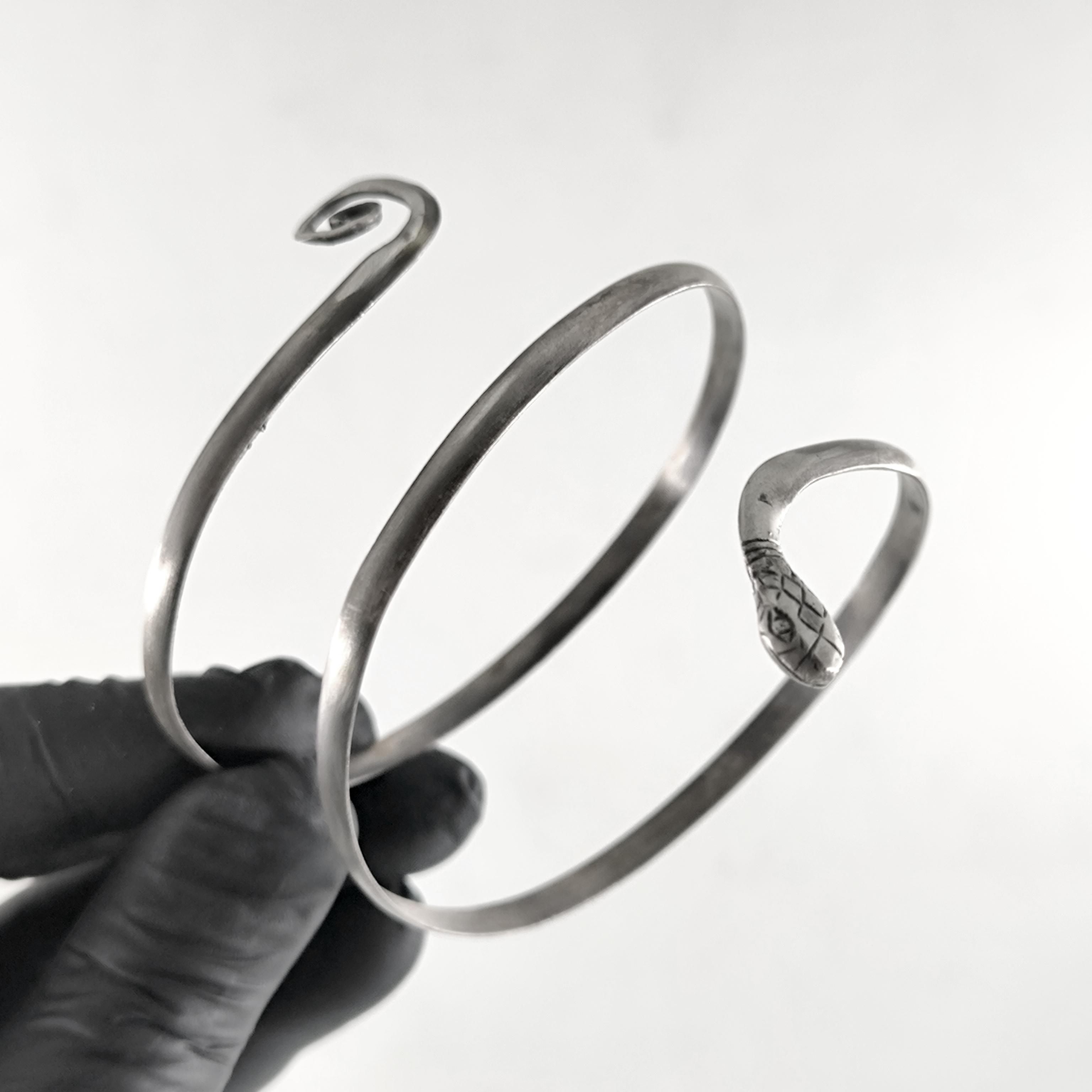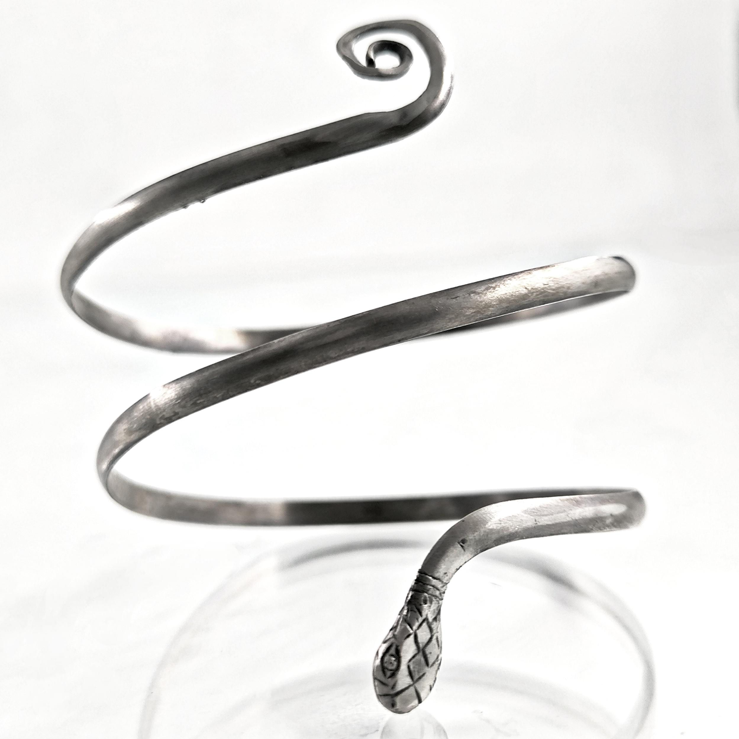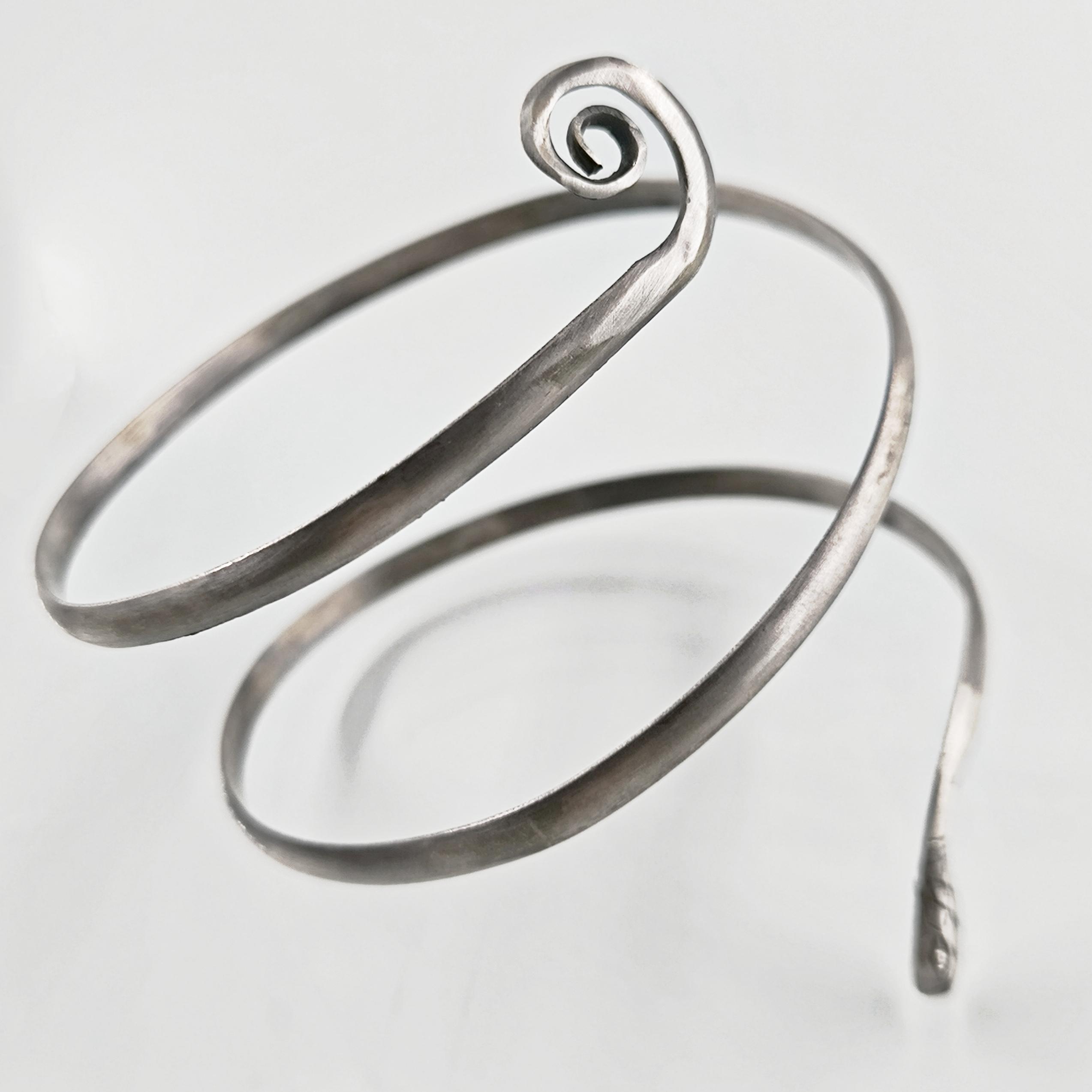 Kadim uygarlıklarda bilgelik, koruma, şifa ve sonsuz dönüşümün sembolü olan yılan formundan ilham alarak tamamen el işçiliğiyle şekillendirdiğim bu pazubilezik, bedenle bütünleşen organik kıvrımlarıyla güçlü bir duruş sunuyor. Antik dönemin savaşçılarını, rahiplerini ve krallarını süsleyen spiral form, ruhun sürekli yenilenişini ve yaşam döngüsünü temsil eder. Bileziğin ucunda detaylı şekilde işlenmiş yılan başı, taşıyan kişiye sezgi, güç ve koruyucu enerji vadeden bir tılsım niteliğindedir. 925 ayar gümüşten elde dövülerek şekillendirilen bu parça, hem mitolojik hem de estetik anlamda zamansız bir ifade taşır.