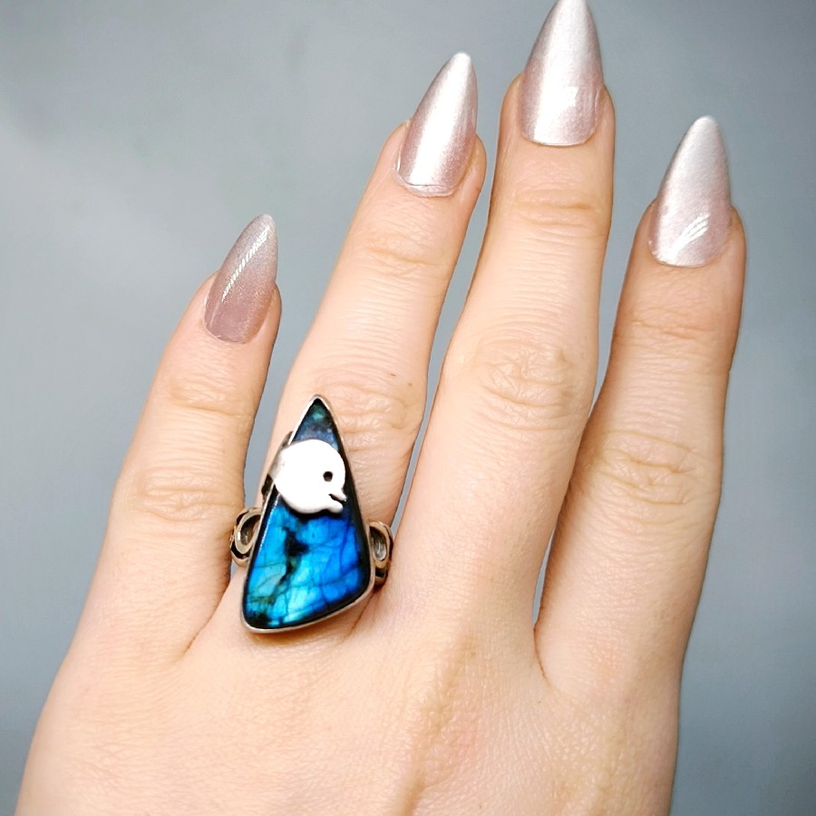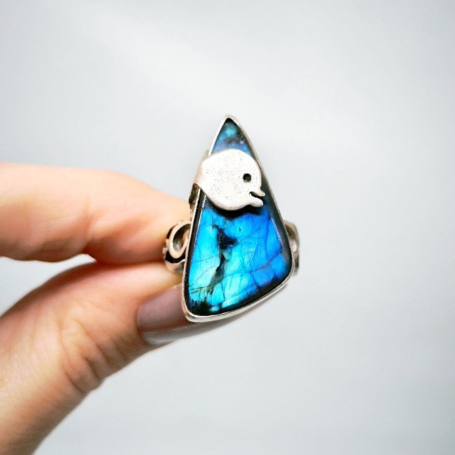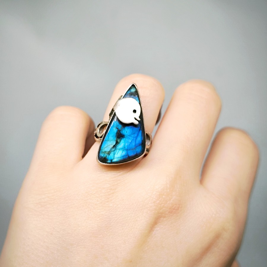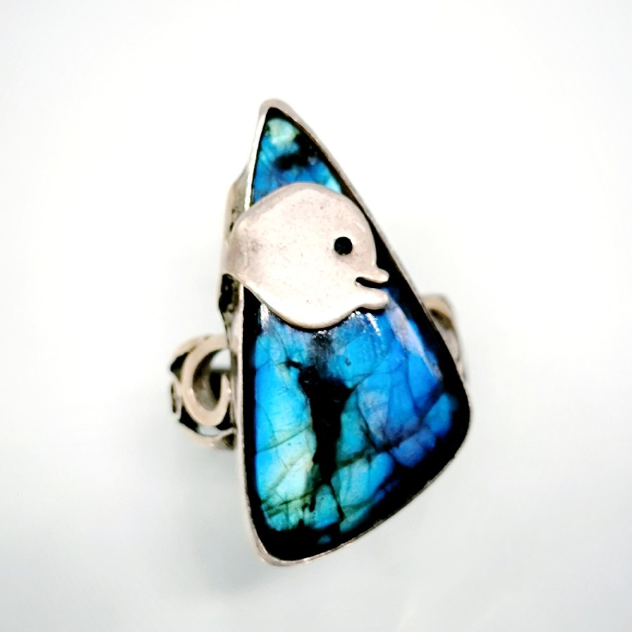 YUNUS BALIĞI TASARIM LABRADORİT TAŞLI GÜMÜŞ YÜZÜK