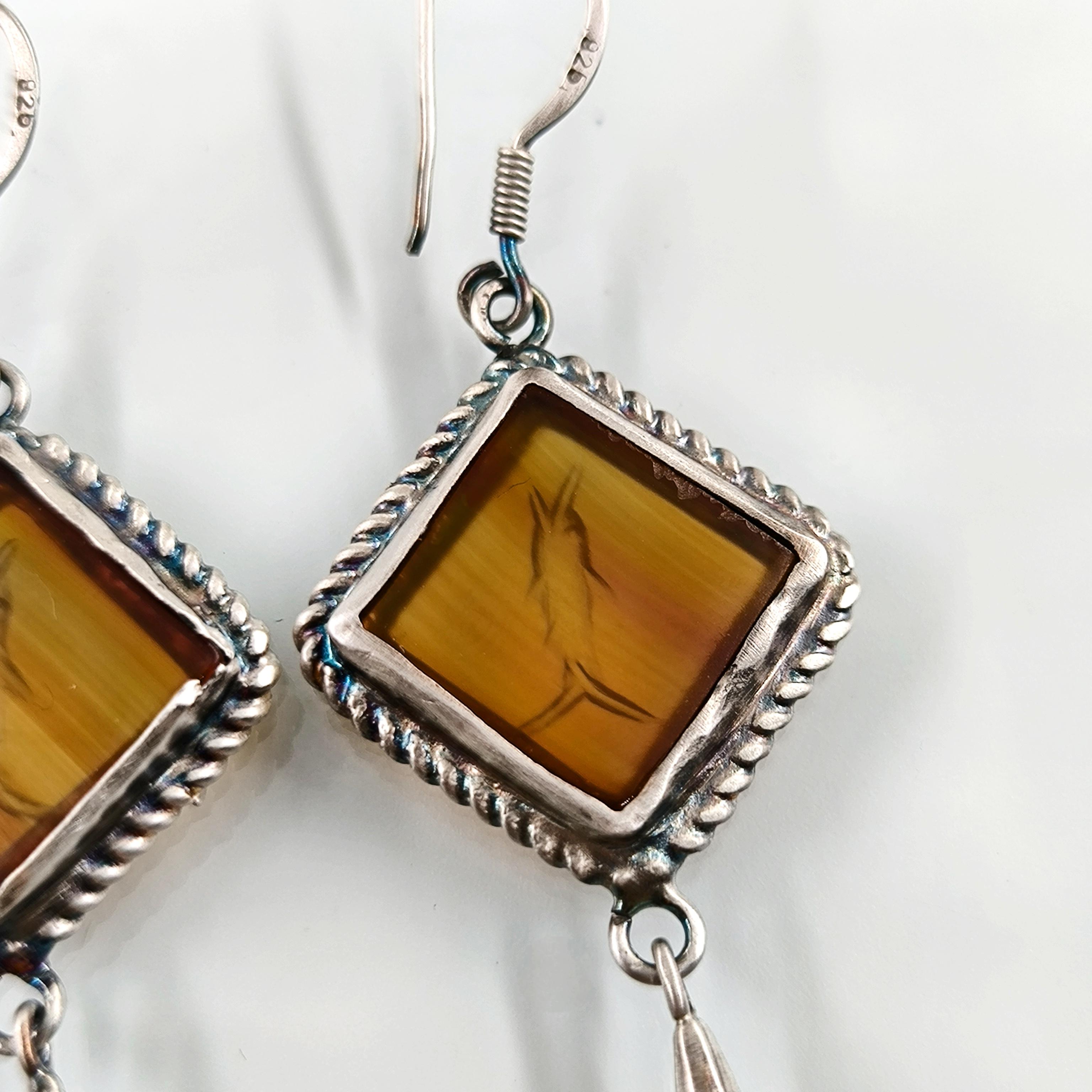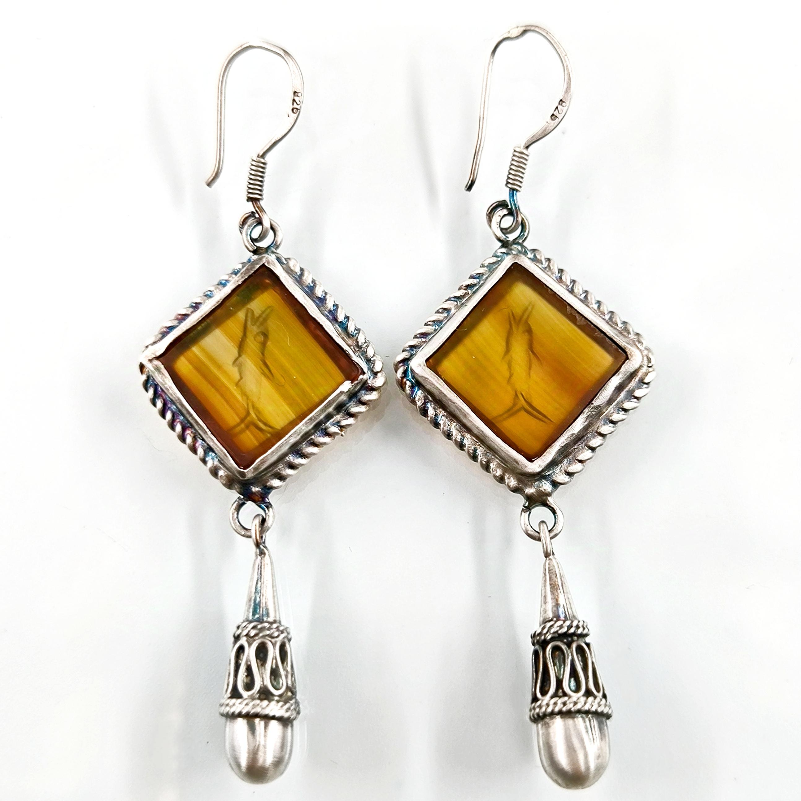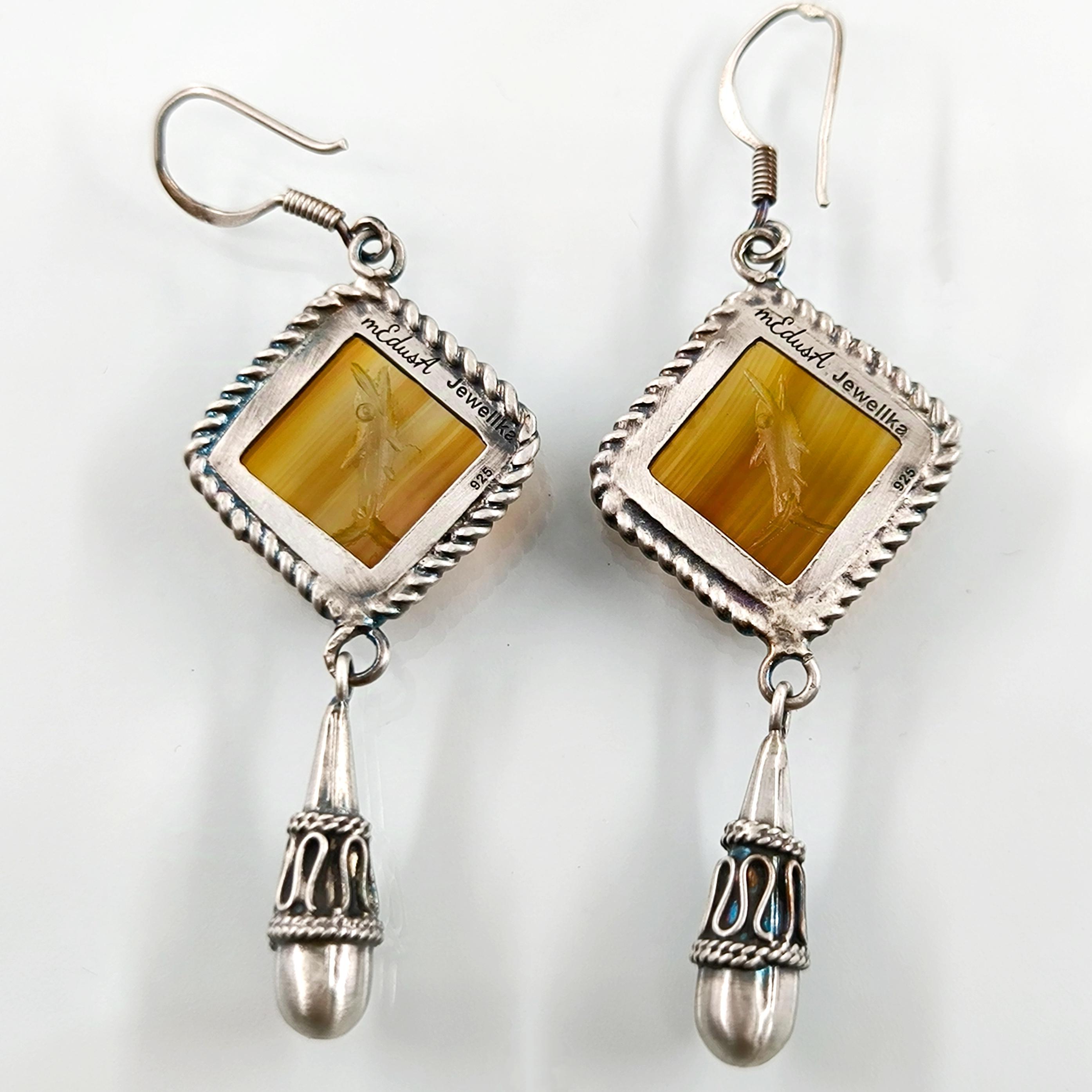 Akik taşlar üzeri Grek stilde Yunus balıkları intaglio sanatı çalıştığımız eşsiz güzellikte Gümüş intaglio küpeler!