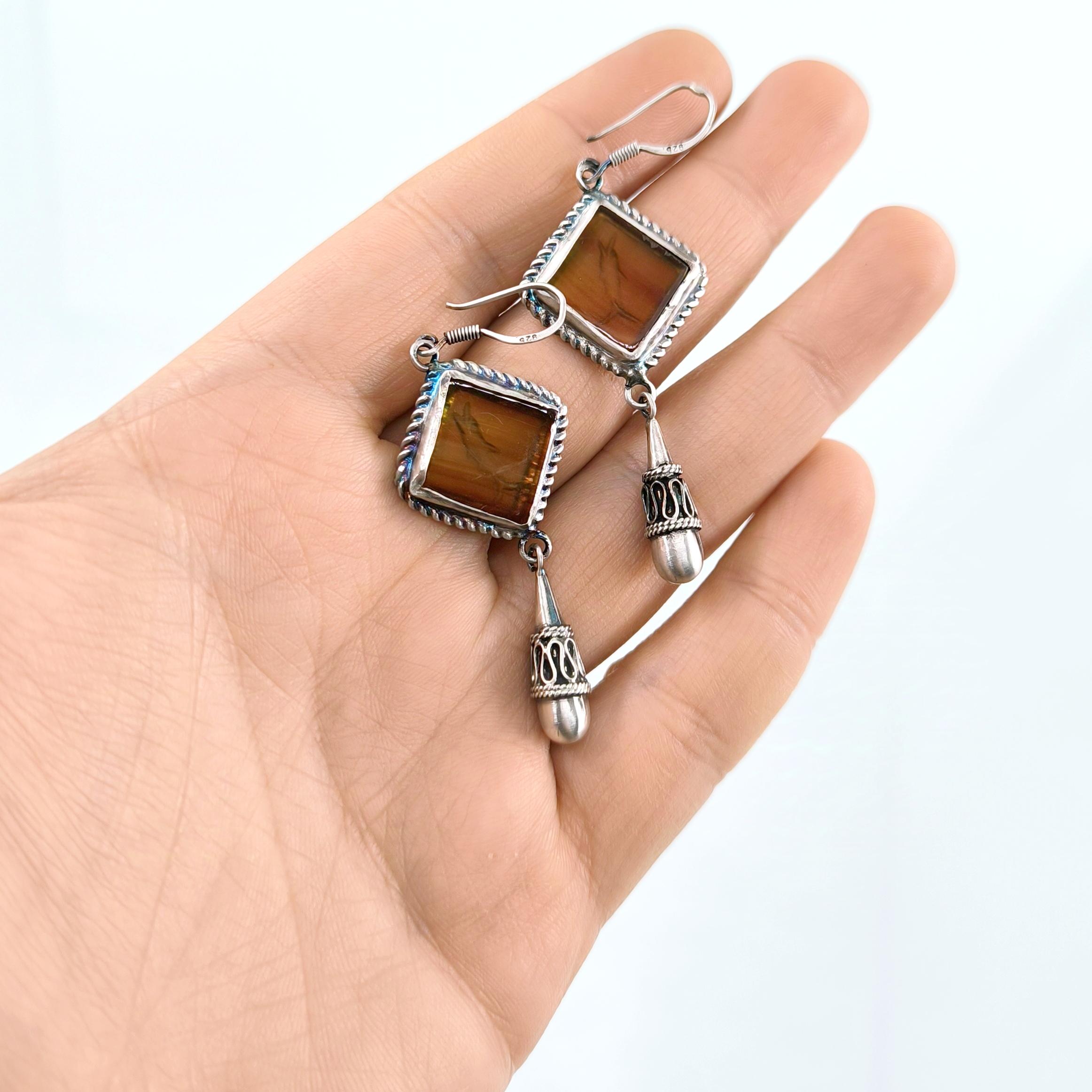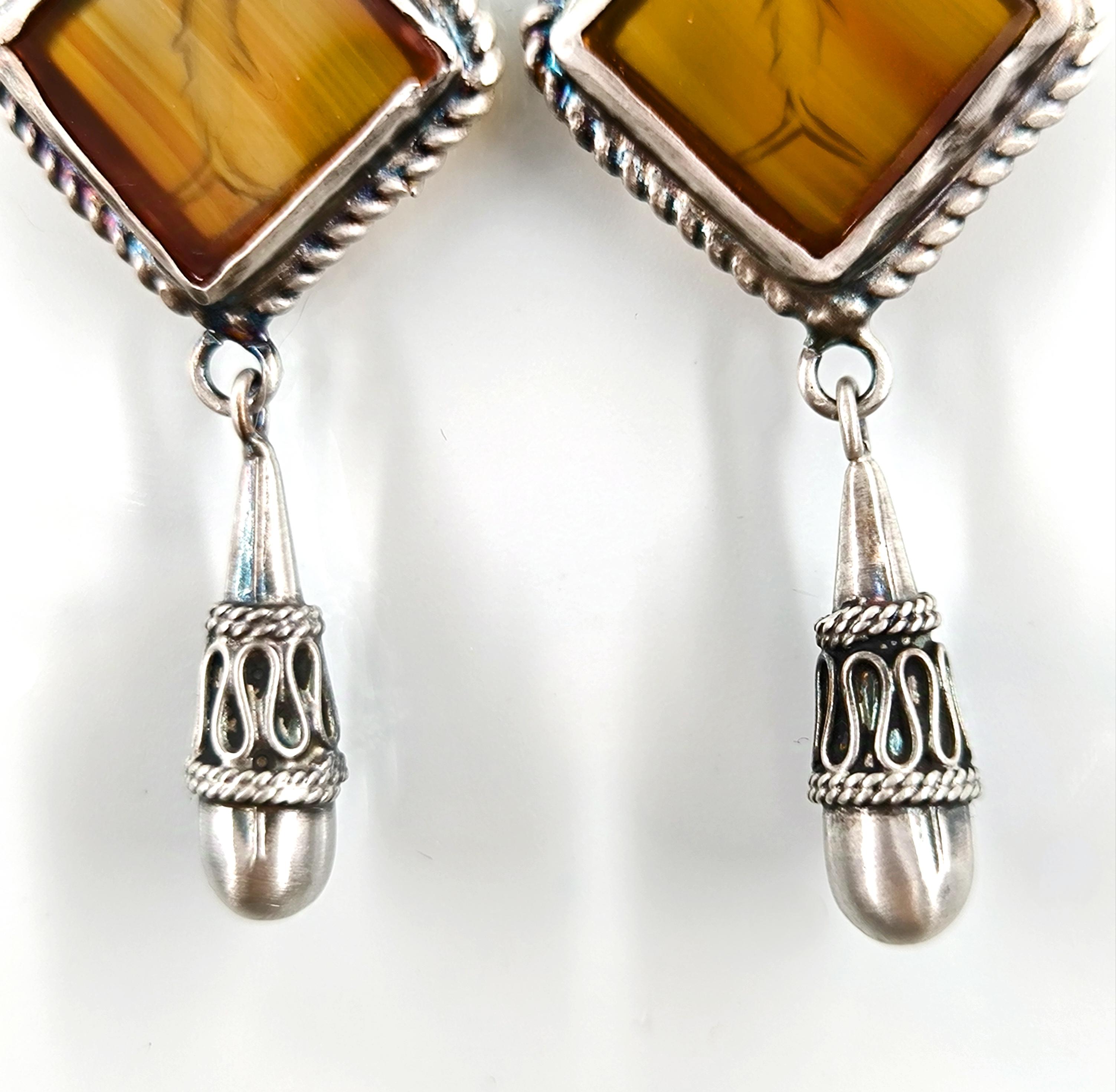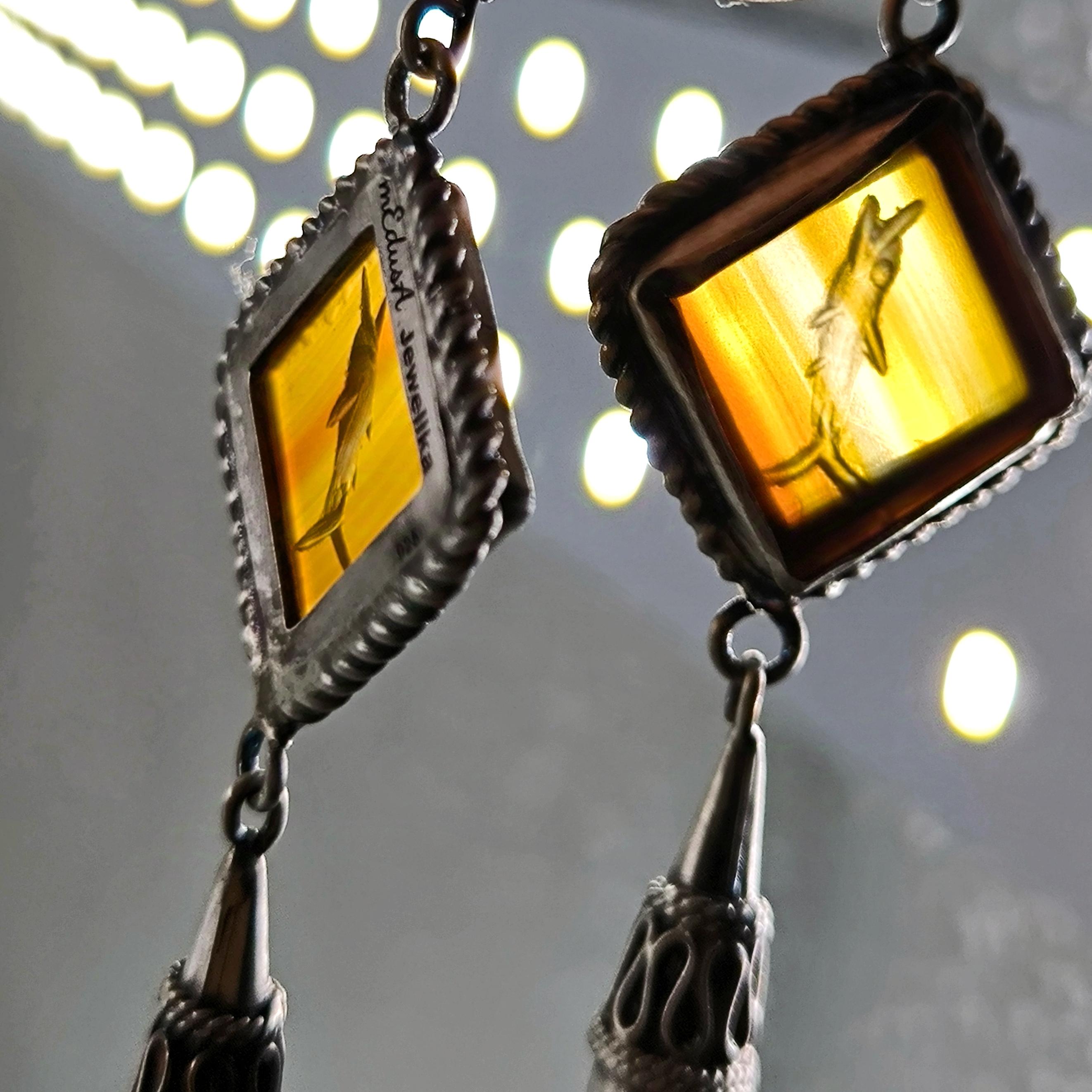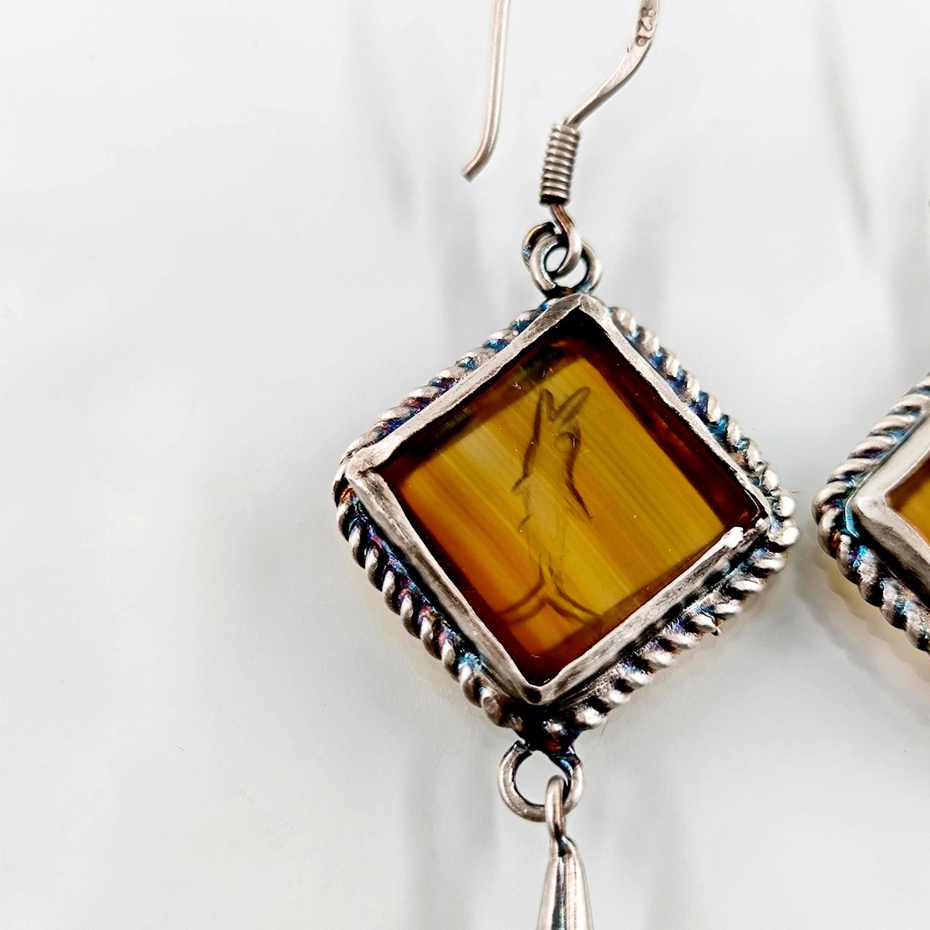 Akik taşlar üzeri Grek stilde Yunus balıkları intaglio sanatı çalıştığımız eşsiz güzellikte Gümüş intaglio küpeler!