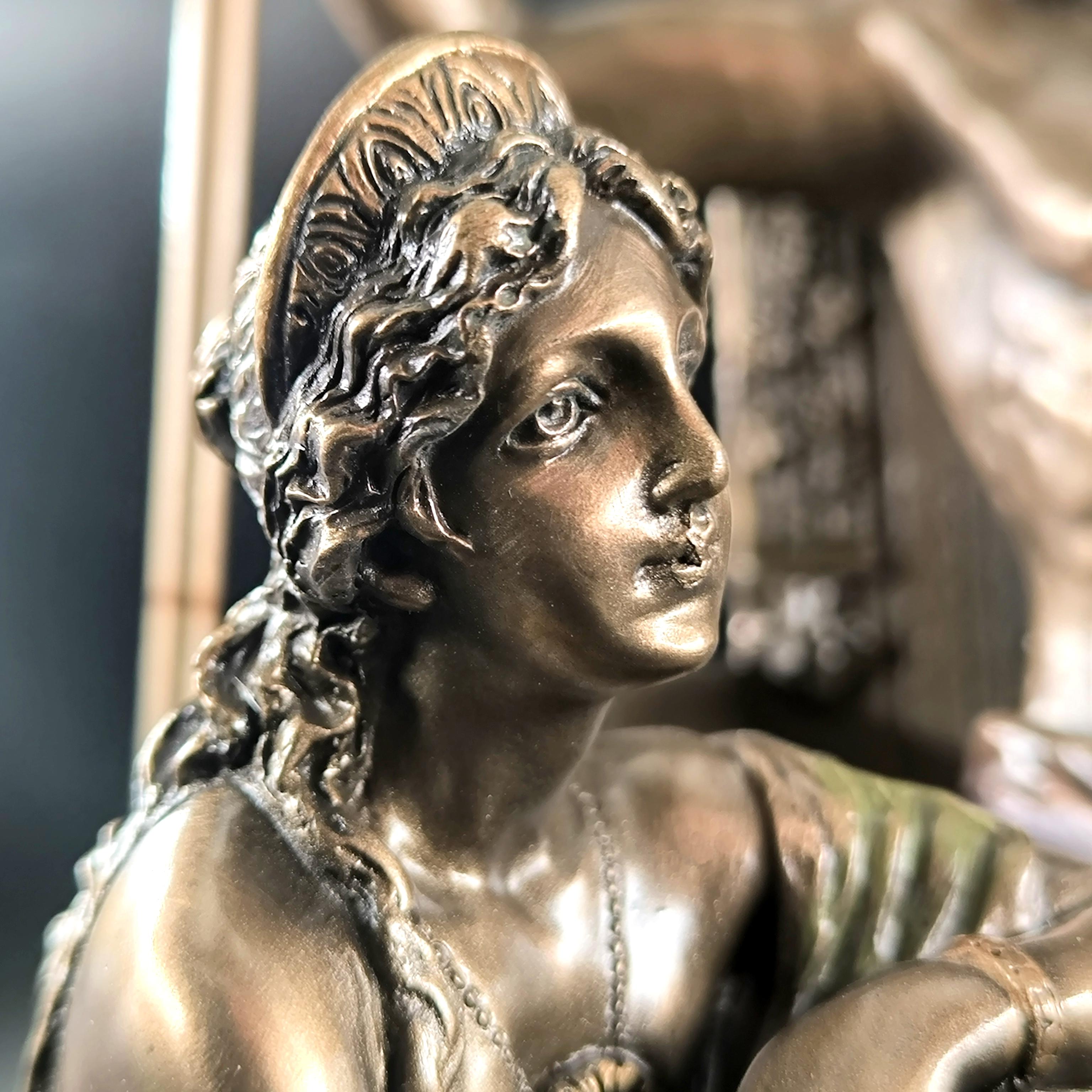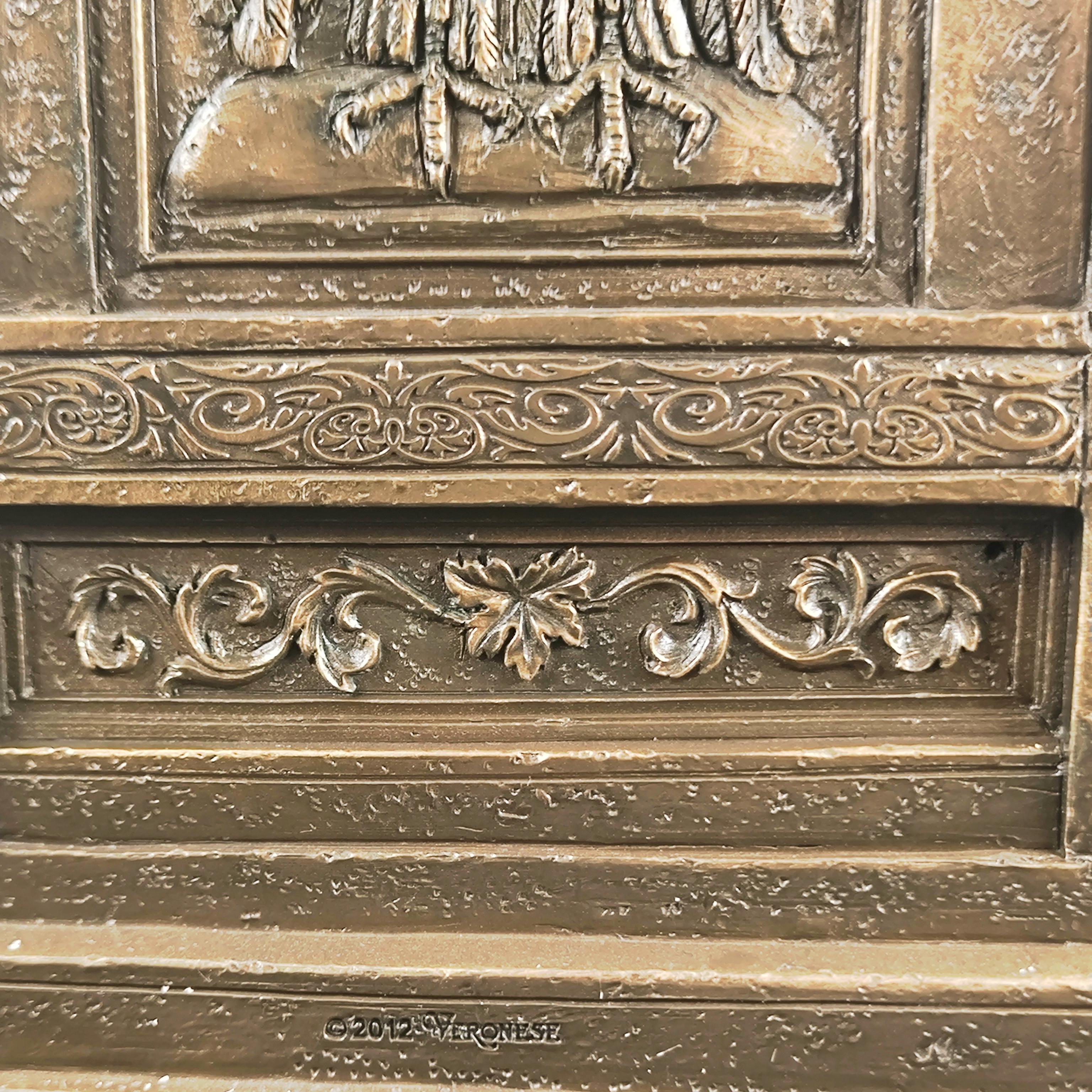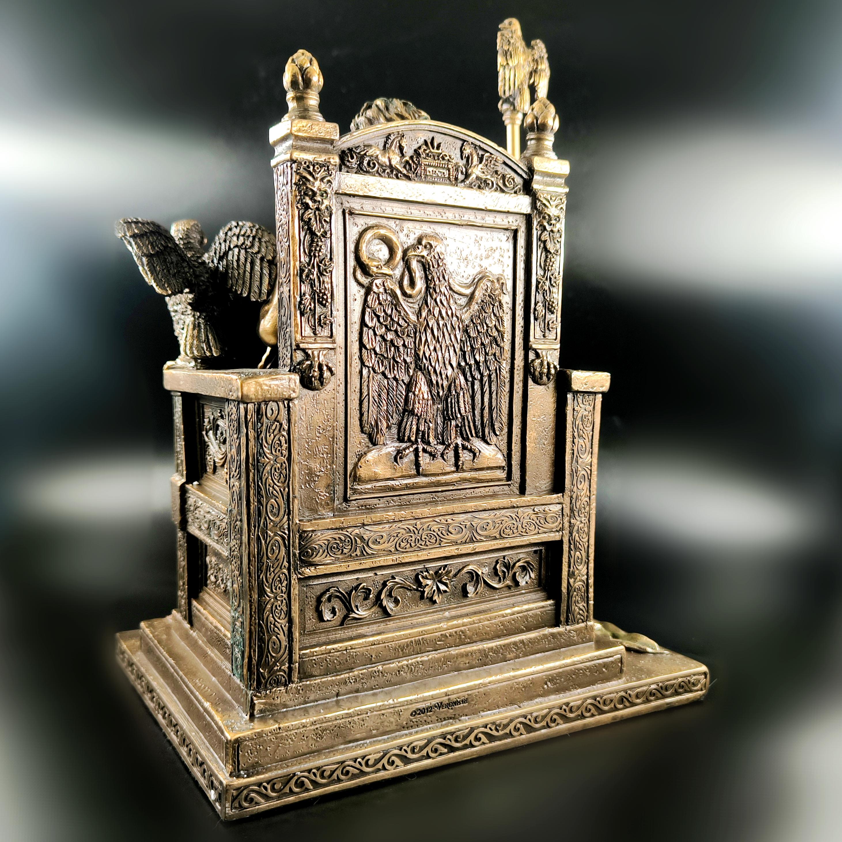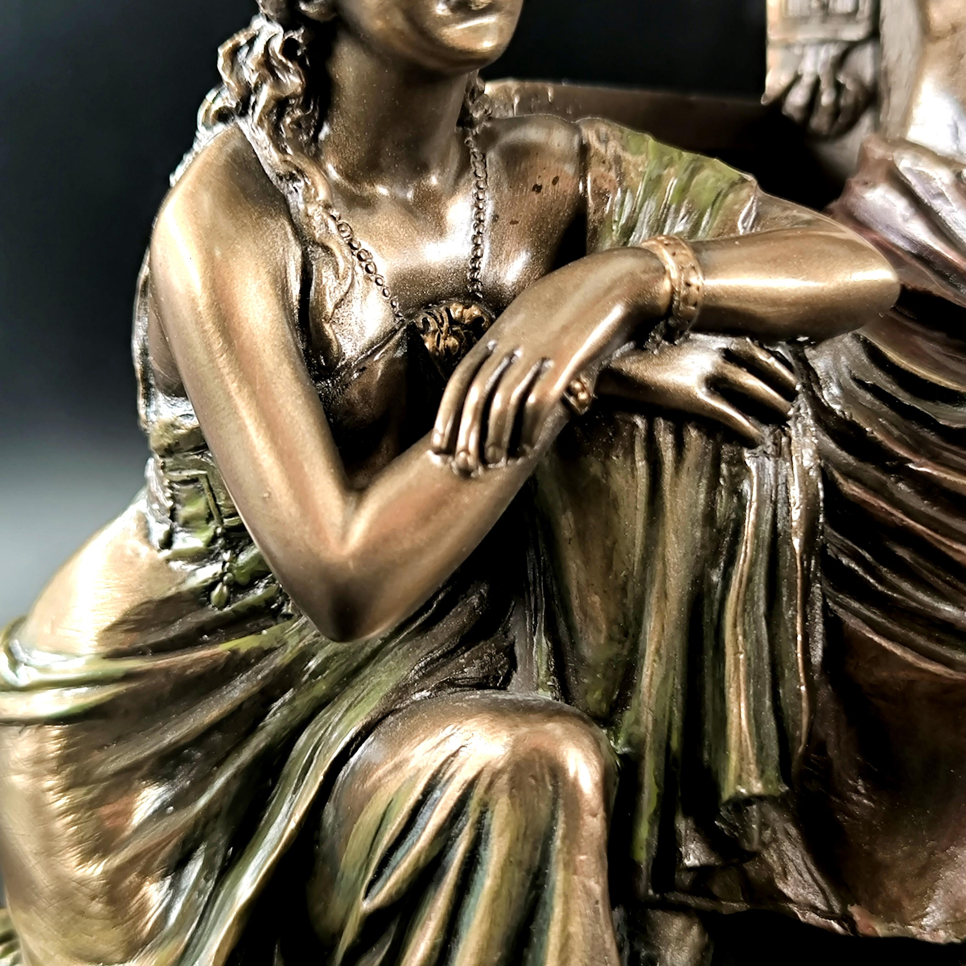 Mitolojinin en yüce kudreti Zeus, görkemli tahtında hüküm sürerken yanında otoritenin ve sadakatin sembolü Hera diz çökmüş halde betimlenmiştir. Zeus’un elindeki şimşek, göklerin hâkimiyetini temsil ederken, tahtının iki yanında yükselen kartallar ilahi gücün ve koruyucu kuvvetin simgesidir. Heykelin her kıvrımında, her detayında tanrısal bir görkem ve antik dünyanın ihtişamı hissedilir. Bu etkileyici sahne, tarihin en güçlü çiftini zamana meydan okuyan bir duruşla karşımıza çıkarırken, sanatçının mükemmel dokunuşlarıyla adeta nefes alır. Antik Yunan panteonunun en görkemli anı, koleksiyonlarda merkezde duracak kadar asil ve büyülü bir estetikle yeniden hayat bulmaktadır. Mermer ve kemik tozu karışımlı özel bir madde ile şekillendirilmiş olup usta sanatçılar tarafından itinayla el boyaması yapılmıştır. Çok detaylı ve gerçekçi ayrıntılara sahip olan bu eser, dünya çapında işçilik kalitesi ile bilinen Veronese markasının damgasını taşımaktadır.